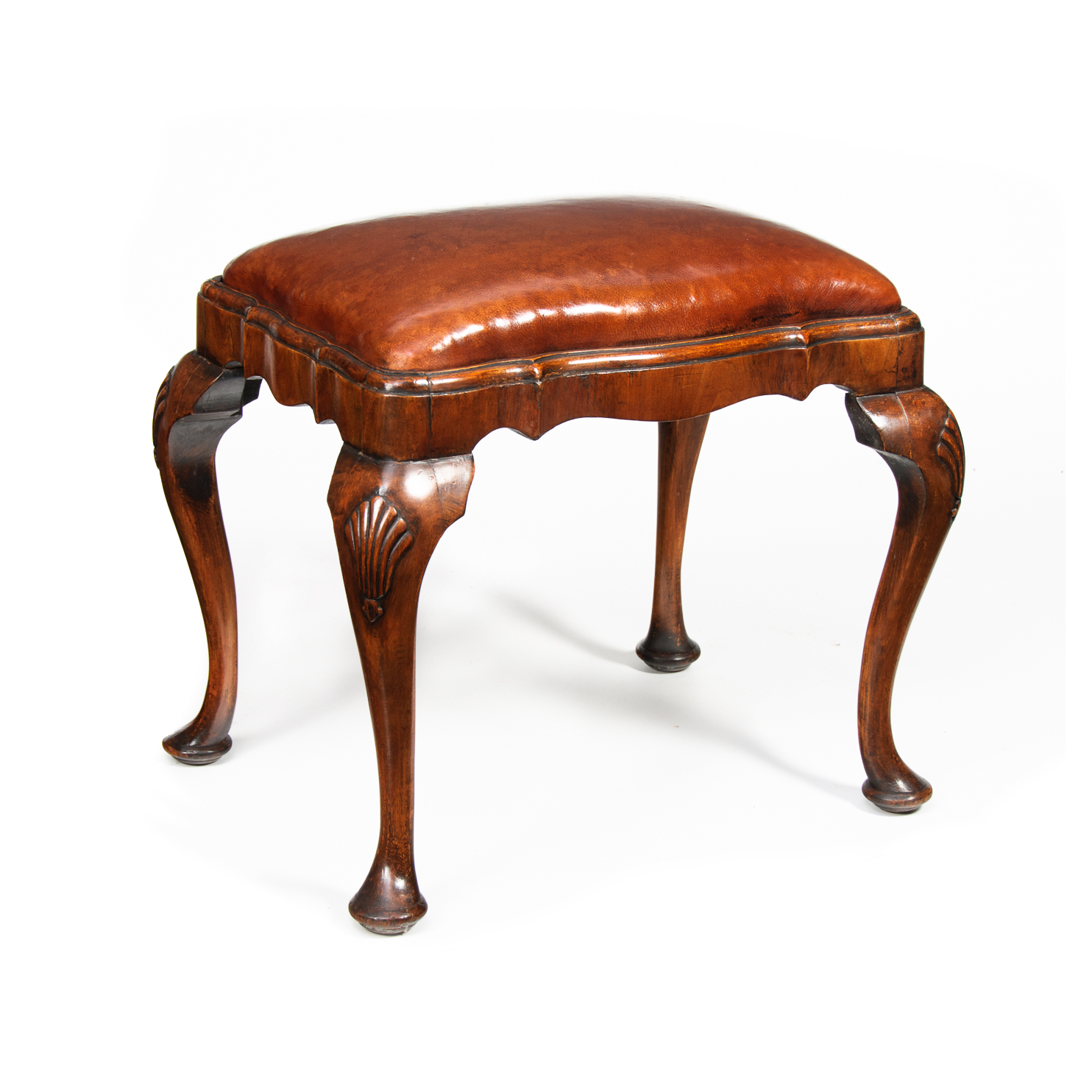 Antique Shaped Walnut & Leather Stool c.1910 (1 of 1)