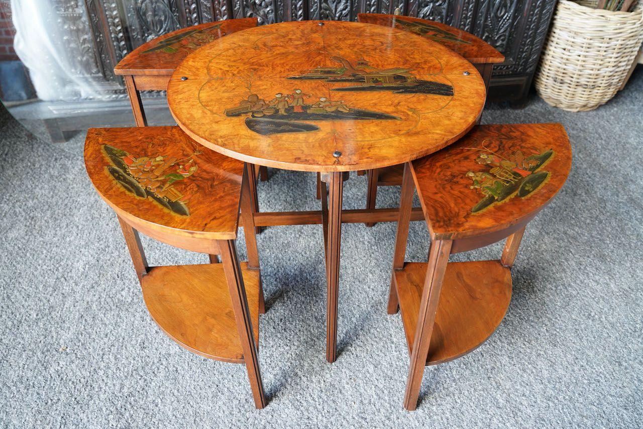 Antique Shibayama Inlaid Japanese Nested Tables Burr Walnut