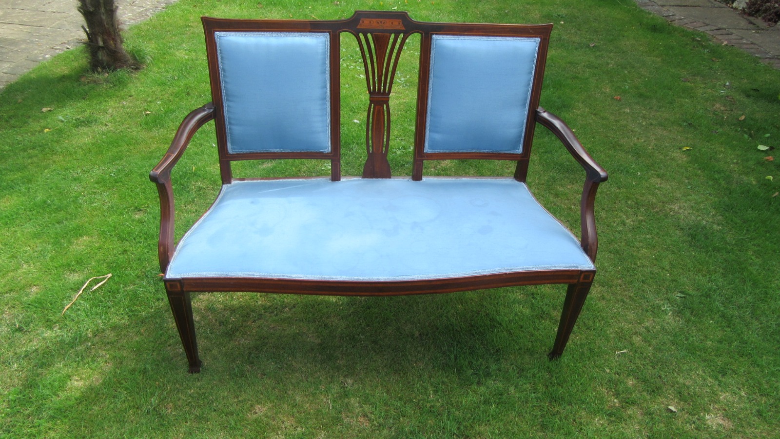 Antique Shoolbred Edwardian Inlaid Mahogany Sofa