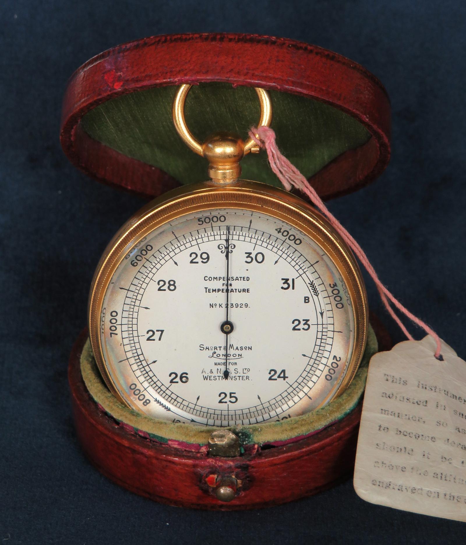 The Vintage Wrist Watch Company has clarified that the Antique Short & Mason Pocket Barometer / Altimeter for A&NCS (LA559217) is genuinely of the period declared with the date/period of manufacture being c.1910