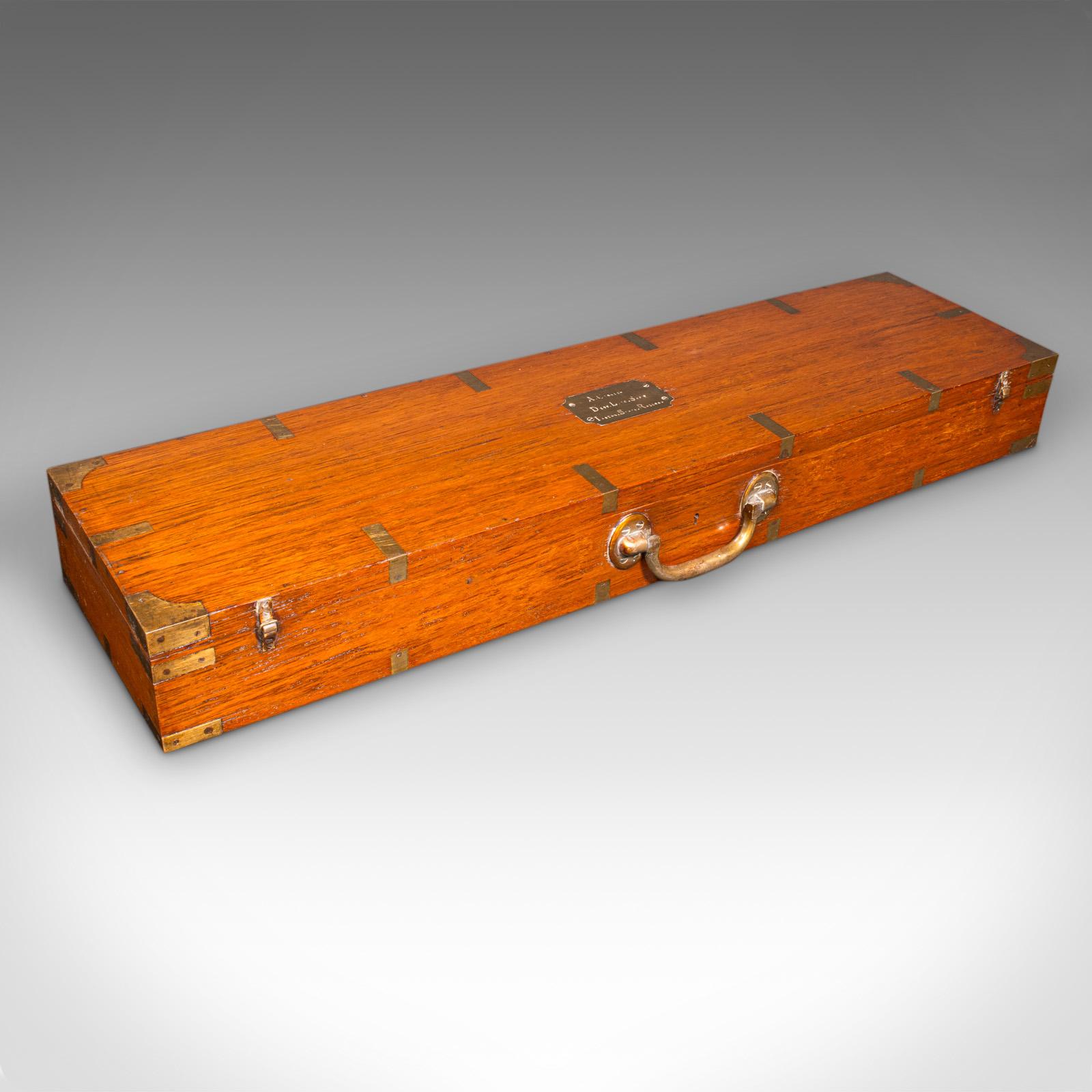 Antique Shotgun Carry Case, Indian Teak, Brass, Rifle Box c.1900