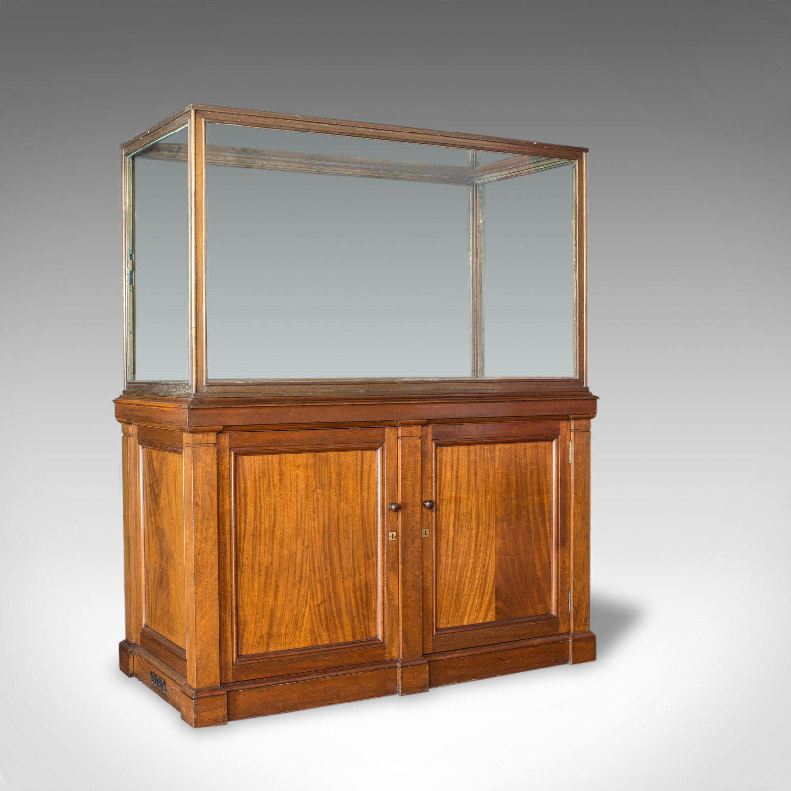 Antique Showcase Cabinet, English, Walnut, Bronze, Display, Museum C.1900
