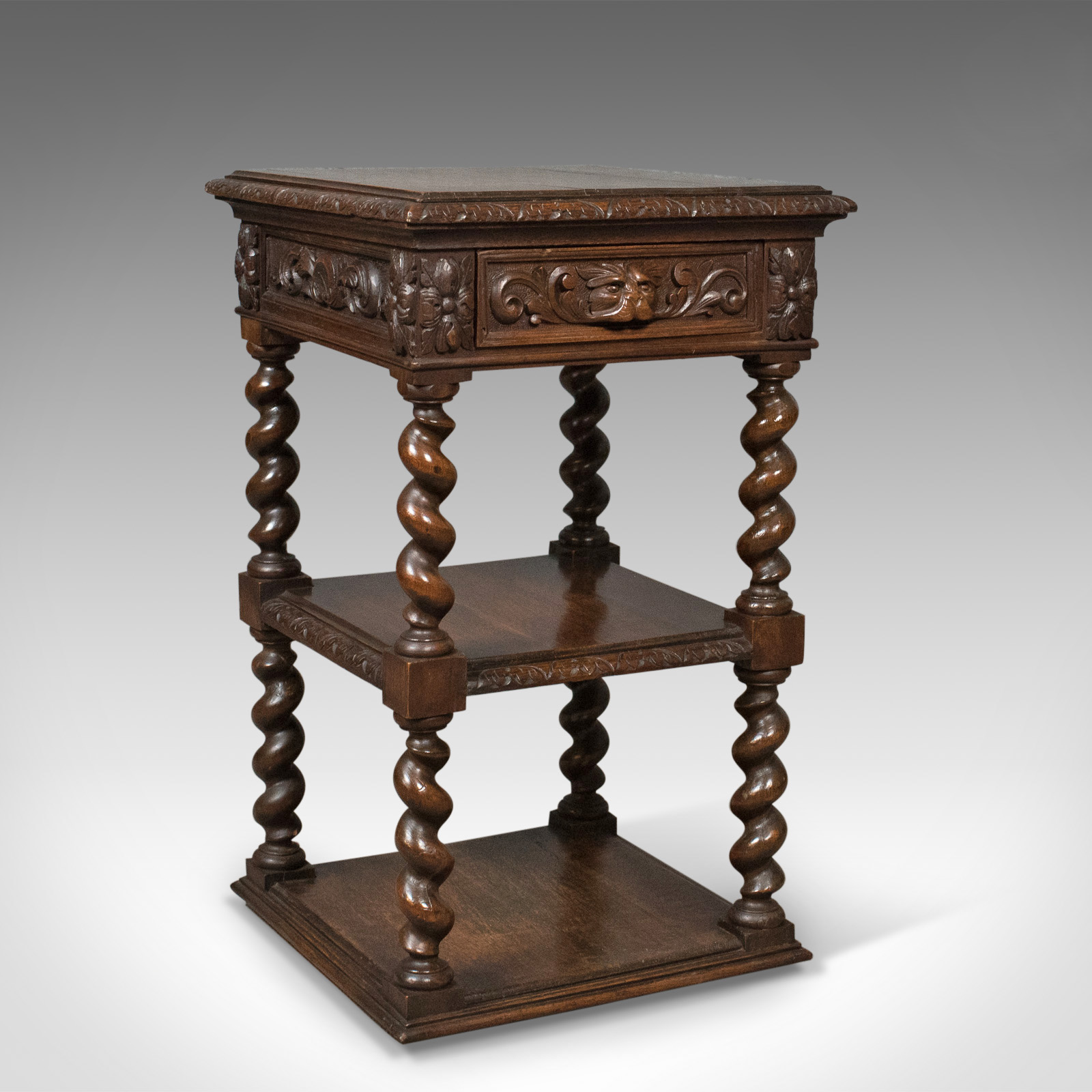 Antique Side Table, Carved Green Man English Oak Stand, Whatnot c.1880