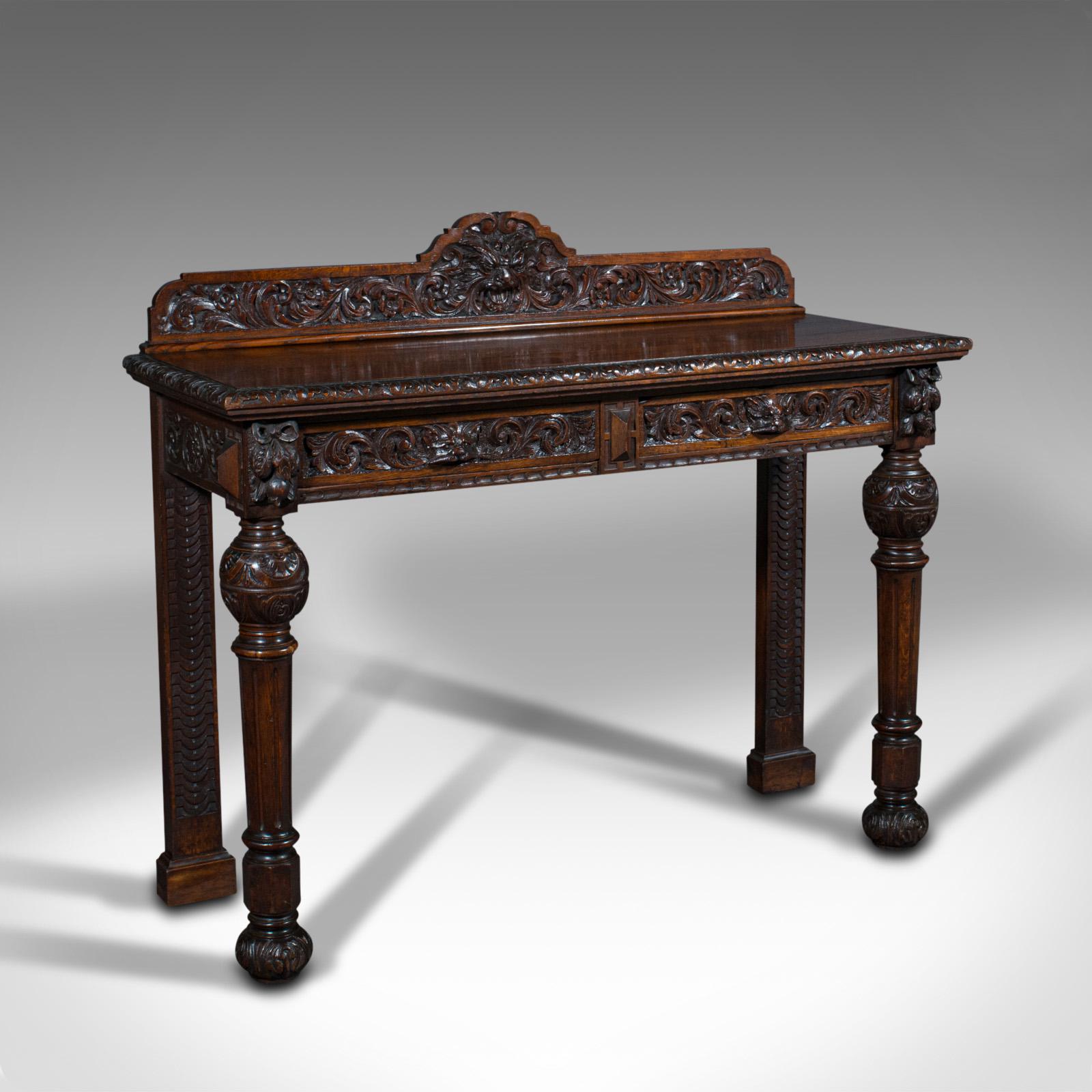 Antique Side Table, Scottish, Oak Console, Desk, Gothic Taste, Victorian c.1880