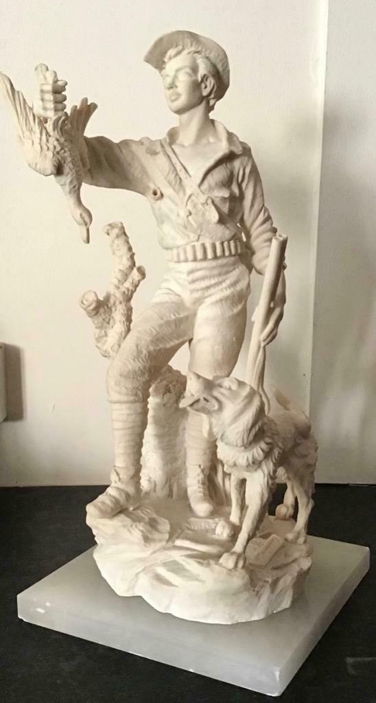 Antique Signed Parian / Bisque Figure of Hunter with Dog