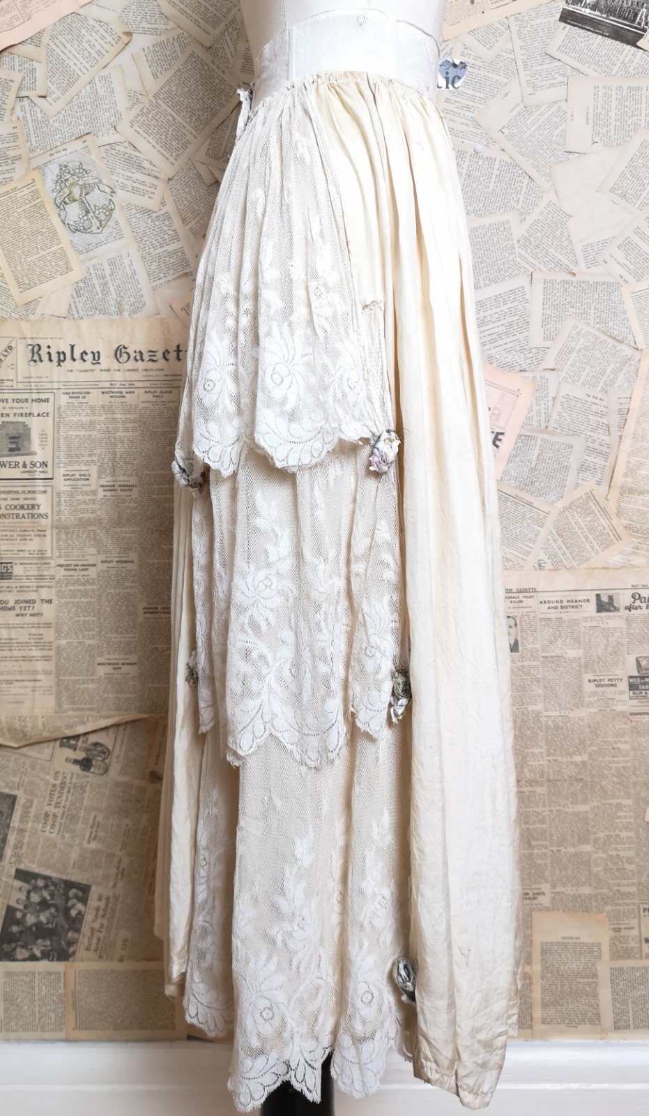 Antique Silk & Lace Skirt, Edwardian, Silk Flowers