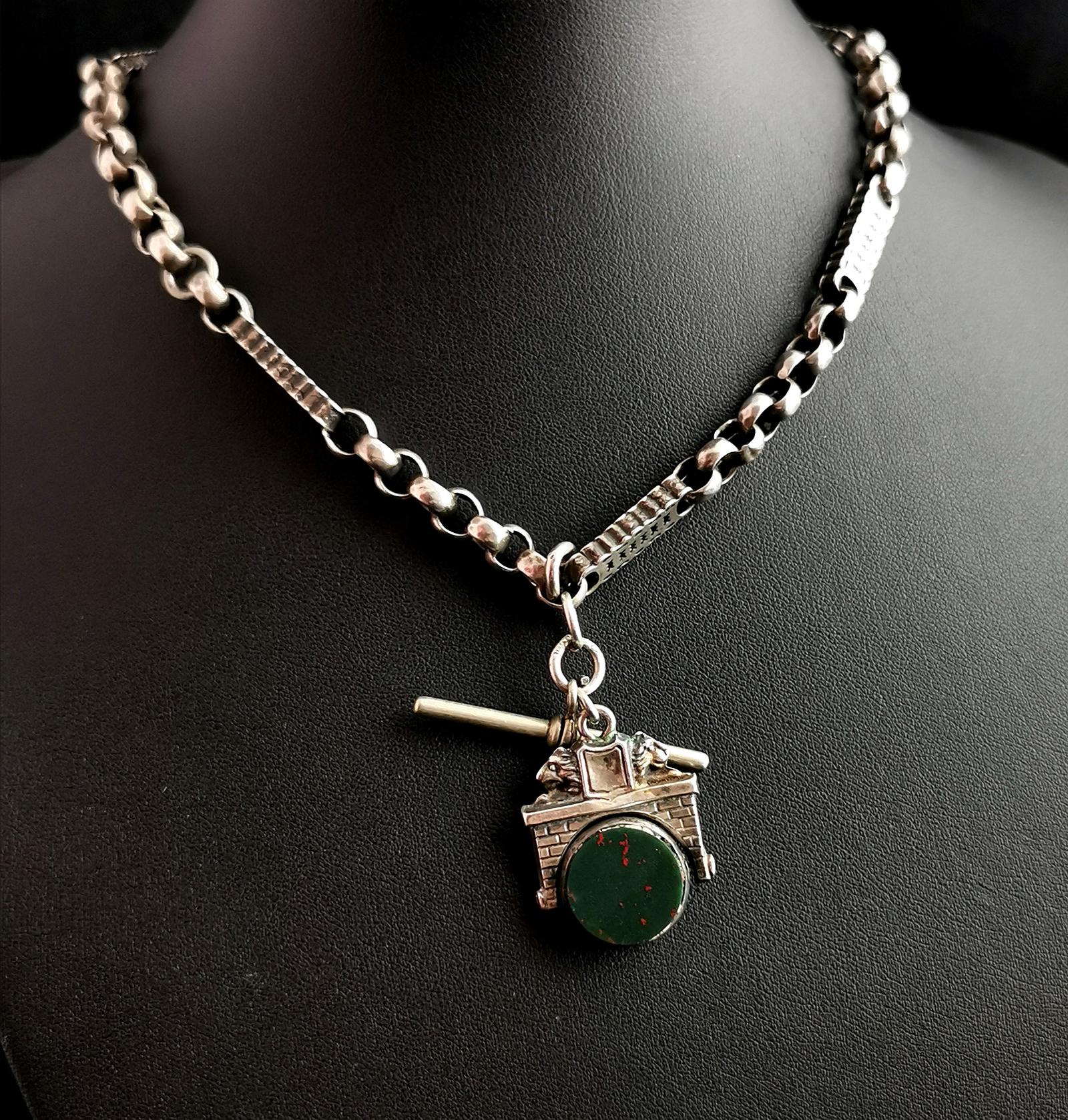 Antique Silver Albert Chain, Fancy Link, Lion Swivel Fob, Watch Chain