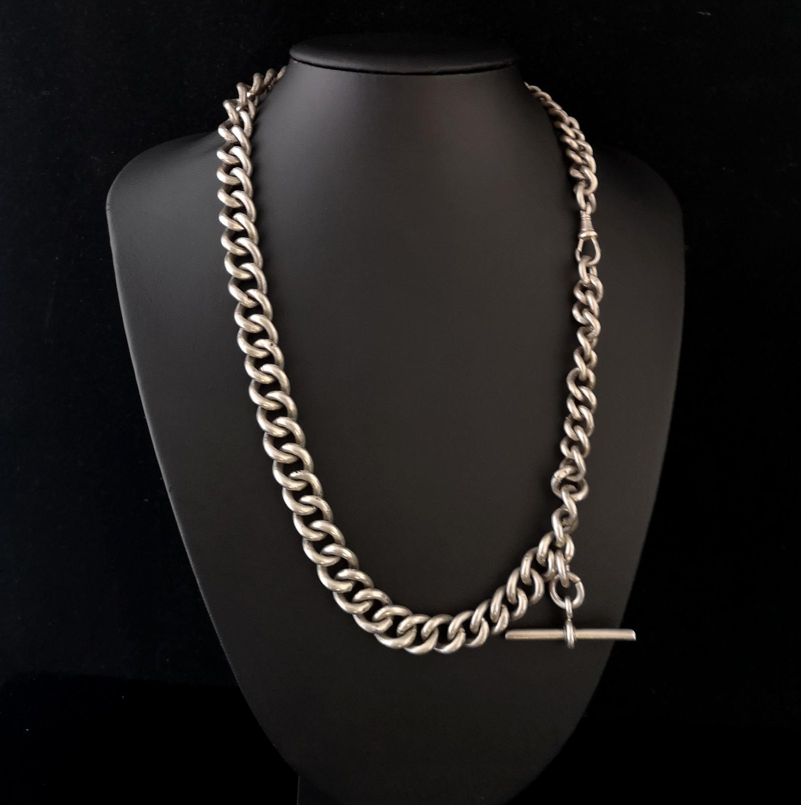 Antique Silver Albert Watch Chain, Heavy
