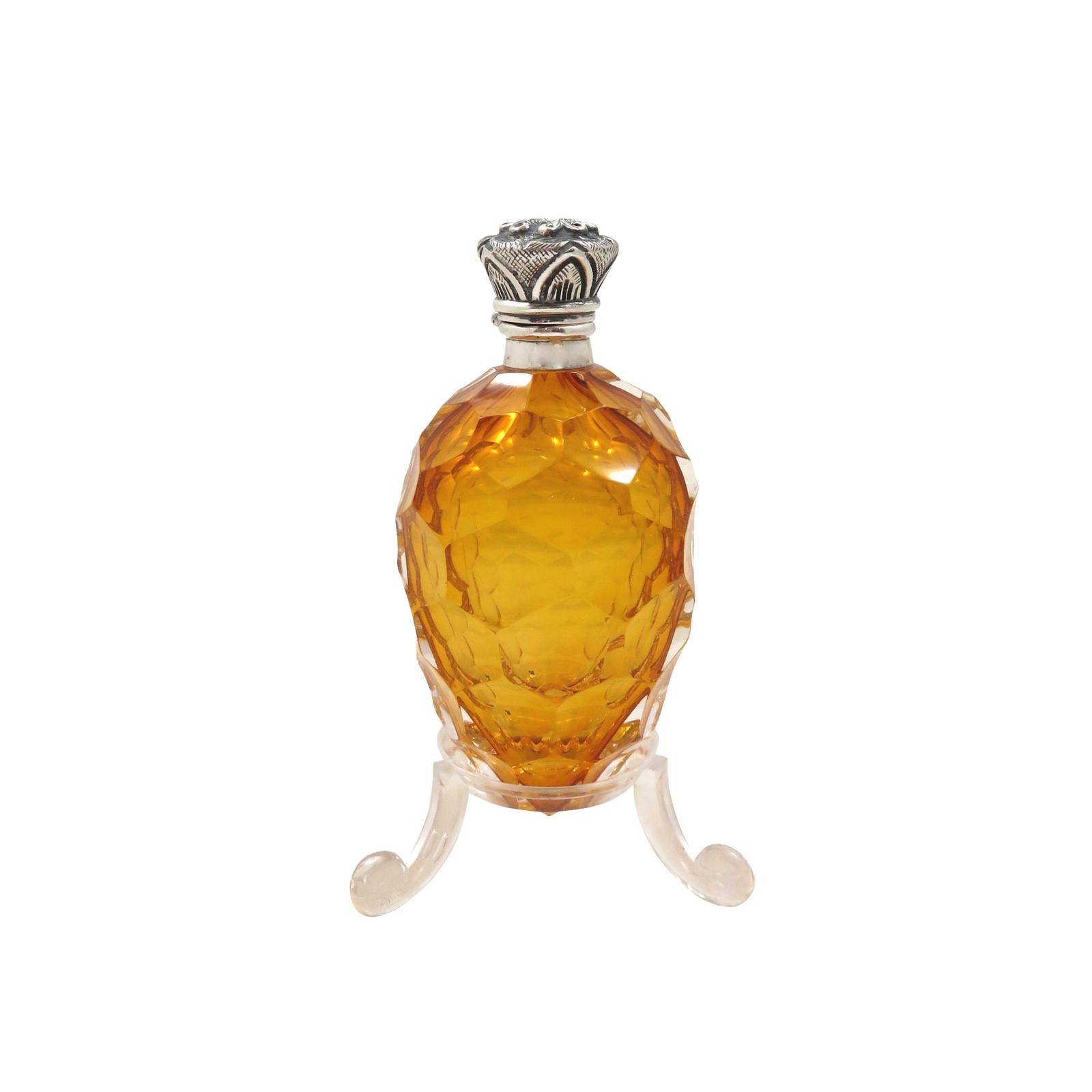 Antique Silver & Amber Glass Scent / Perfume Bottle c.1890