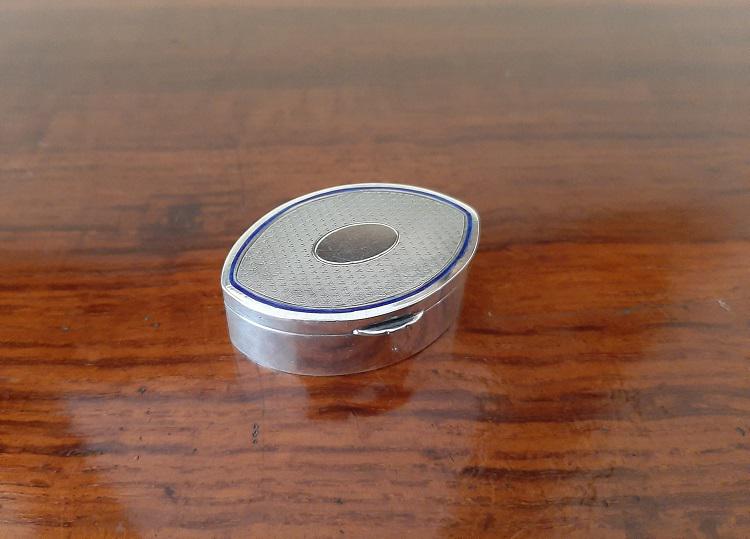 Antique Silver & Blue Enamel Engine Turned Box