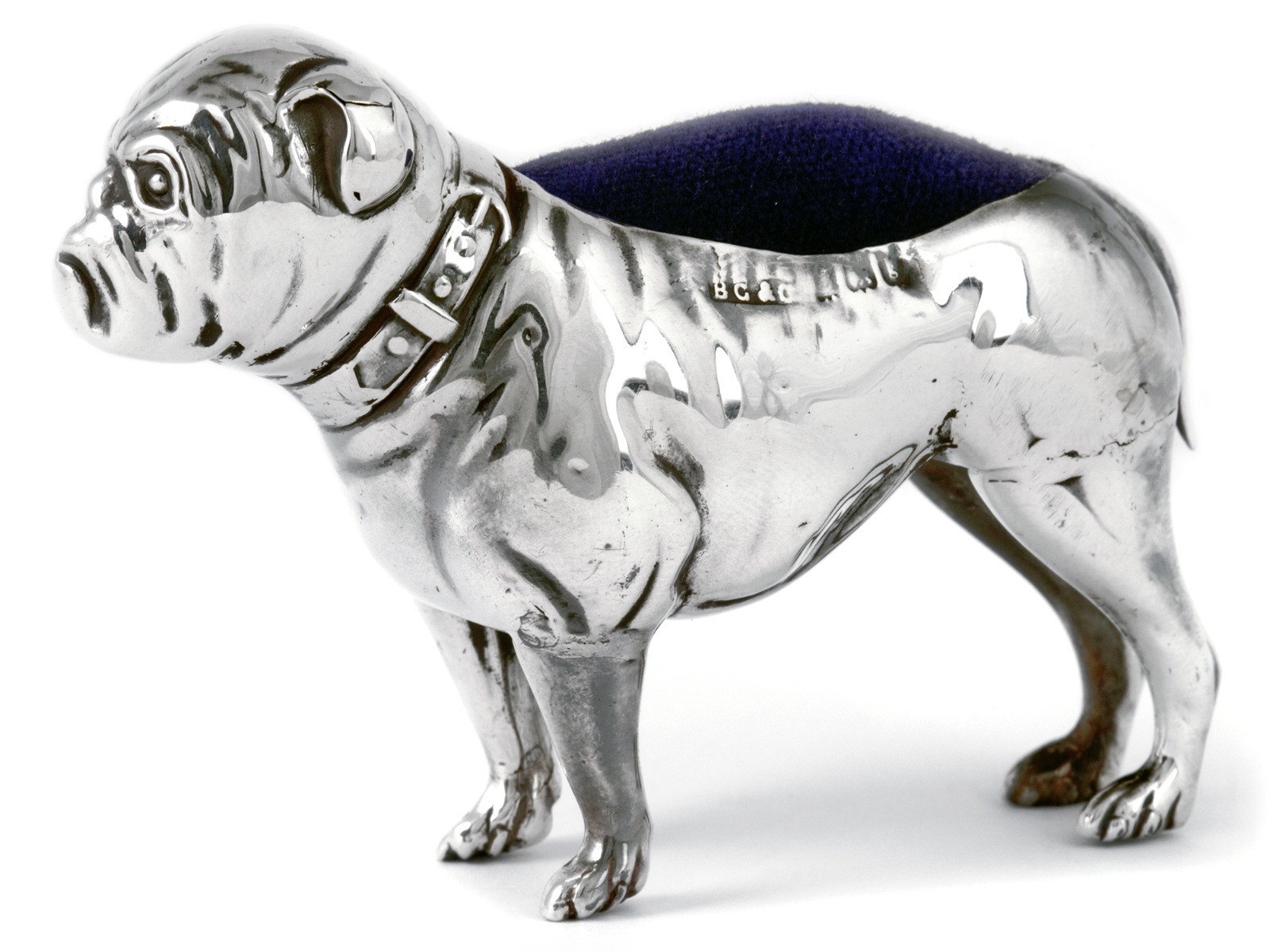 Antique Silver Bull Dog Pin Cushion (1 of 1)