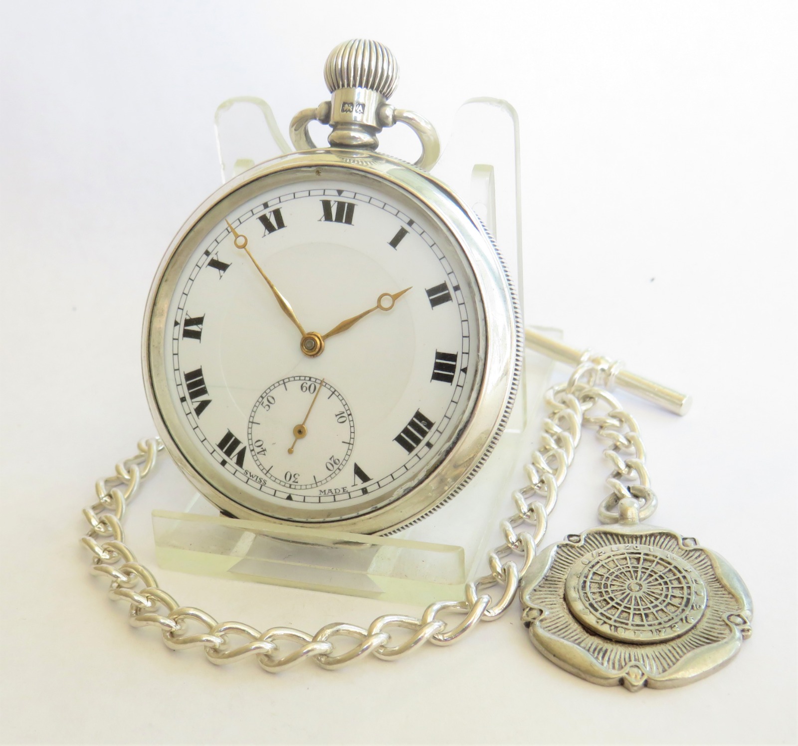 Antique Silver Buren Pocket Watch & Albert
