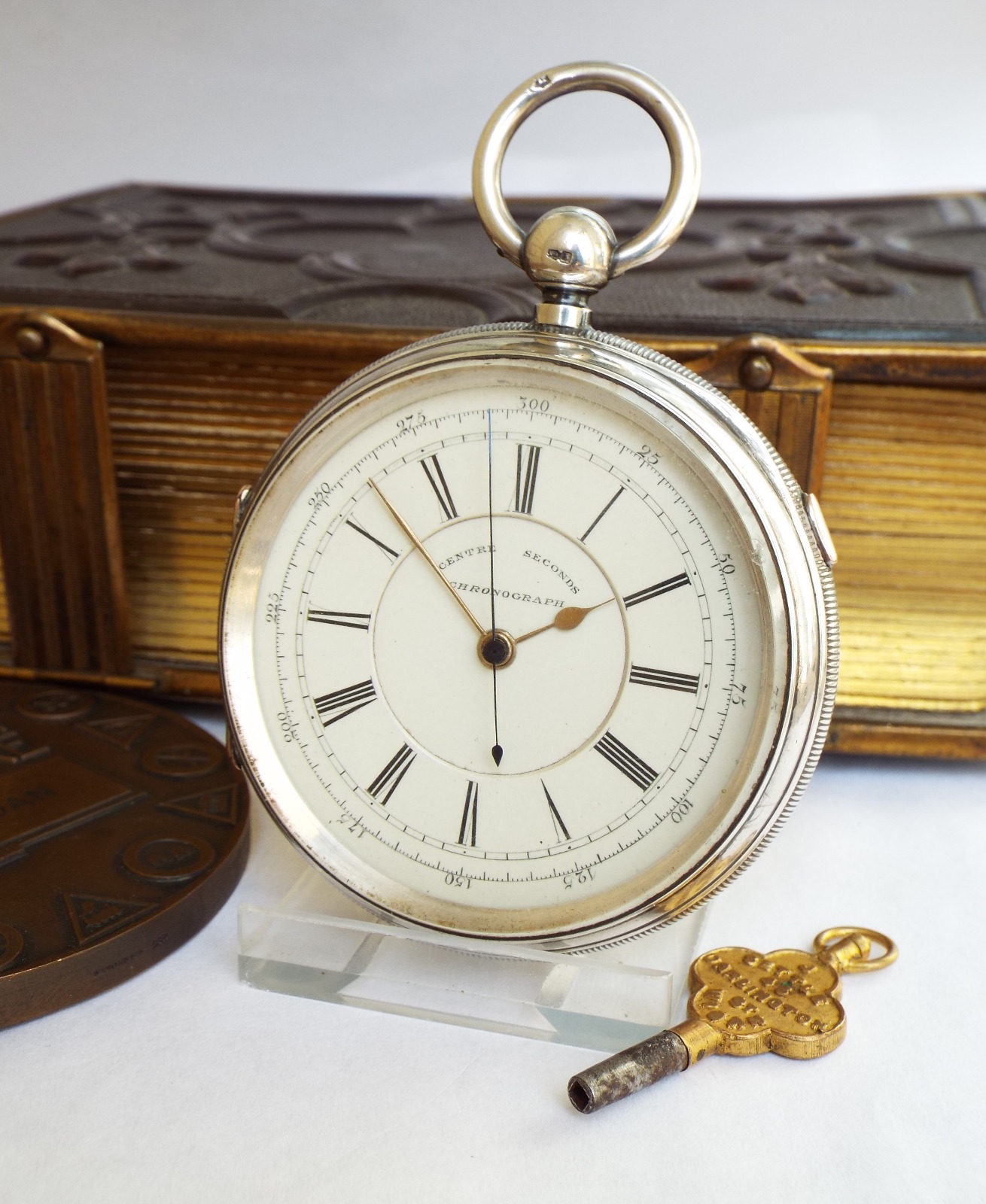 Antique Silver Centre Seconds Chrono Pocket Watch