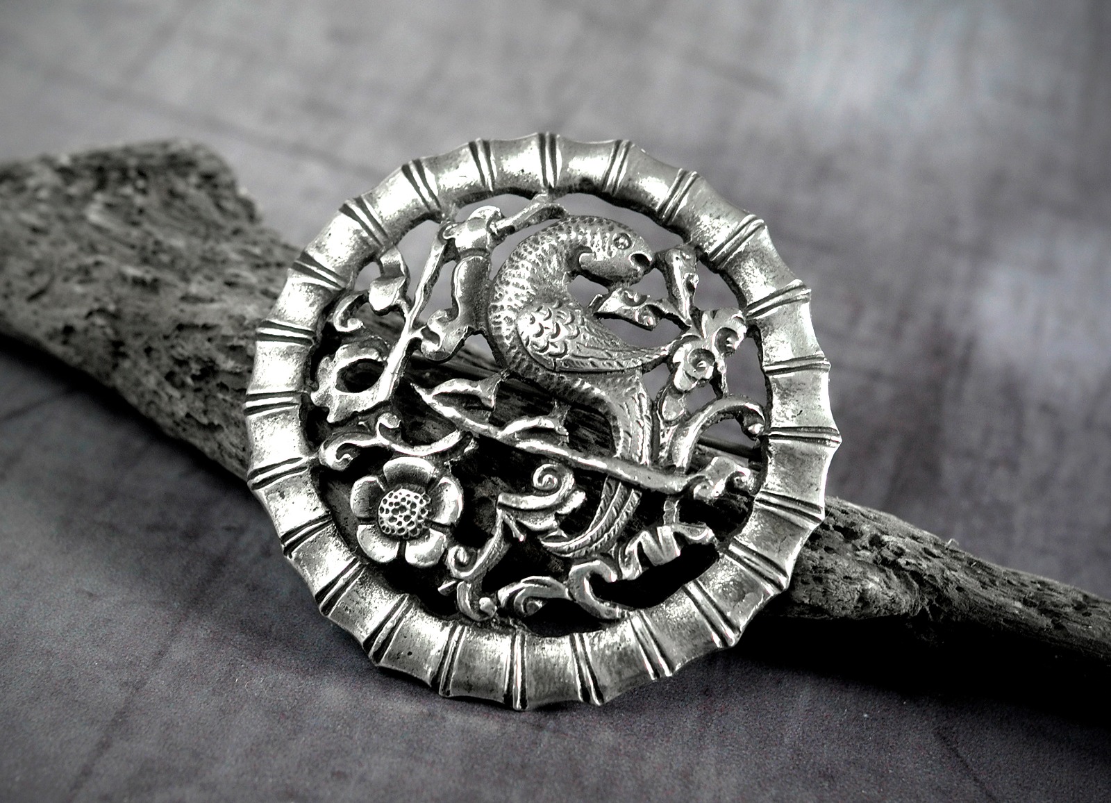 Antique Silver Chinese Brooch, Fenghuang Phoenix C.1900 Oriental