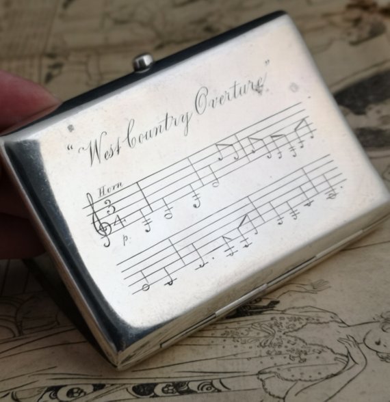 Antique Silver Cigarette Case, Victorian Sterling Silver Cigarette Case, Musical Staves, Gilt Lined, West Country Overture