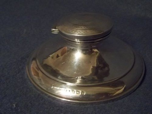Antique Silver Circular Capstan Inkwell, Manchester / Birmingham