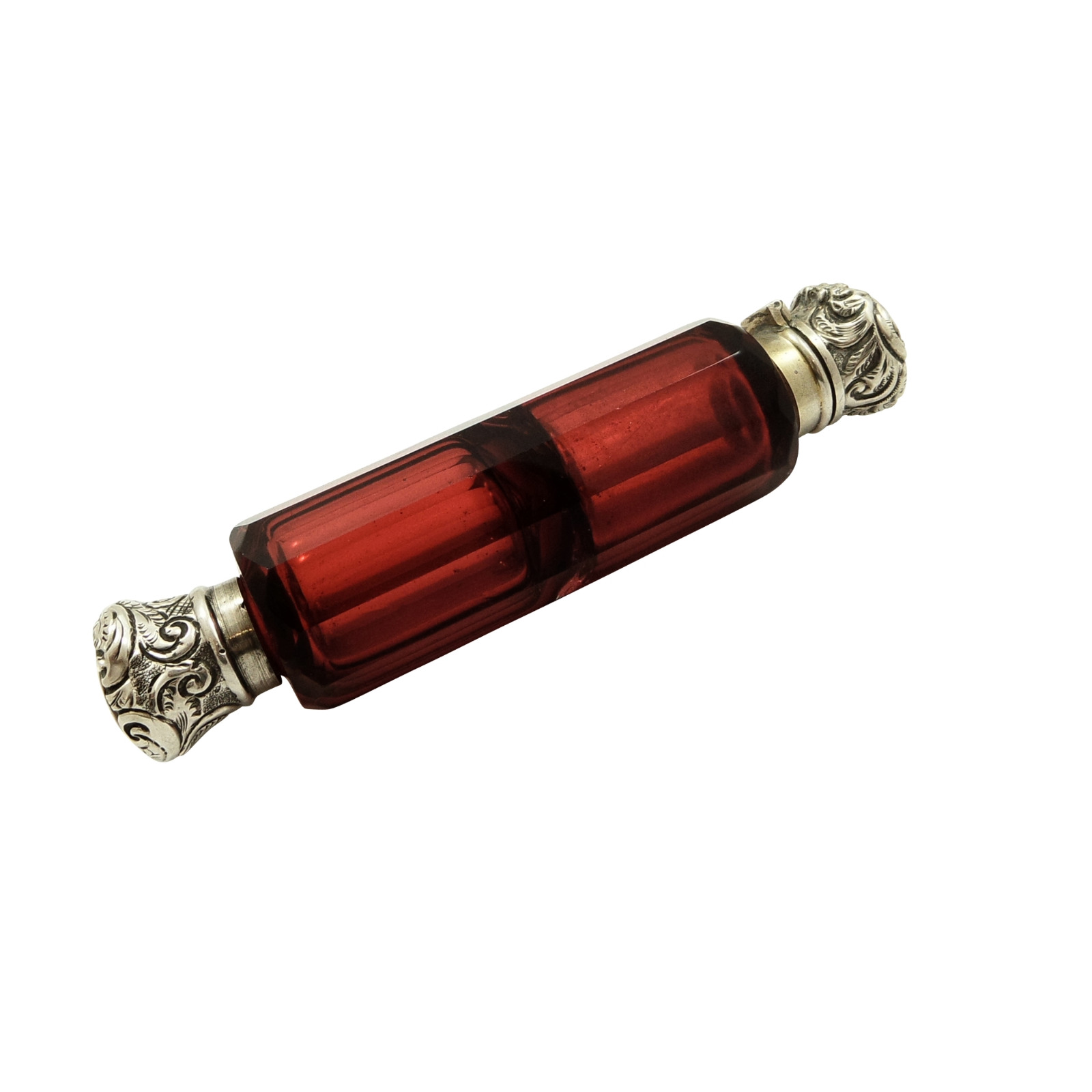 Antique Silver & Cranberry Glass Double End Perfume / Scent Bottle c.1890