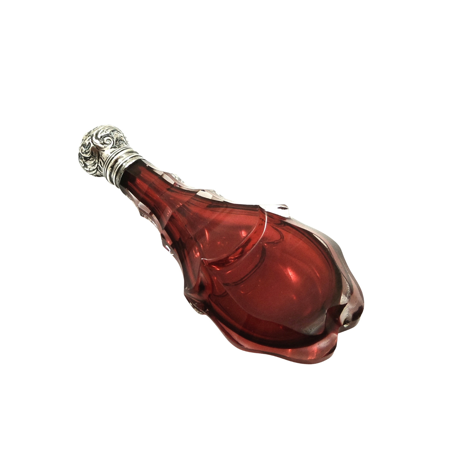 Antique Silver & Cranberry Glass Perfume / Scent Bottle c.1880