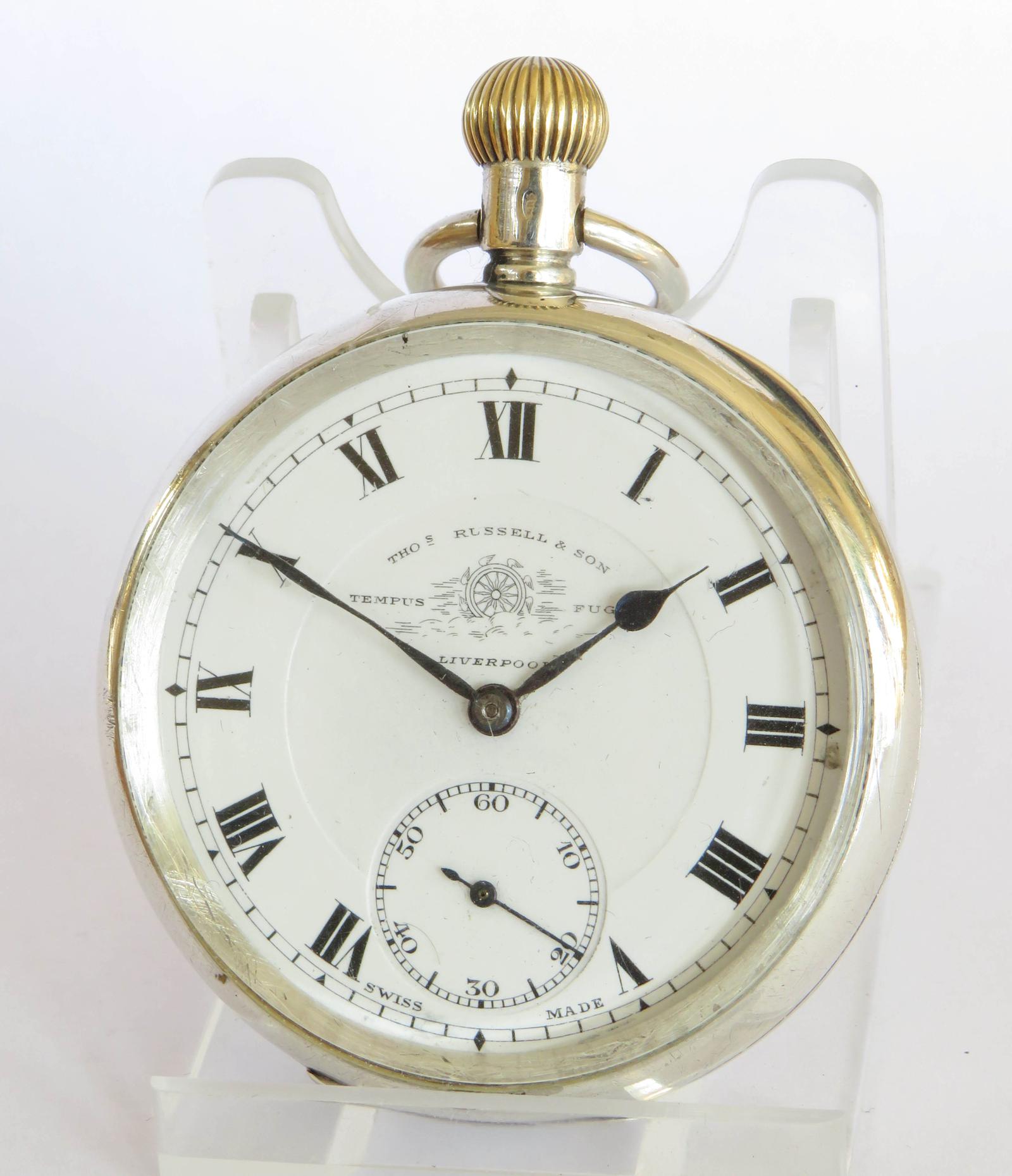 Antique Silver Cyma Pocket Watch for Thomas Russell