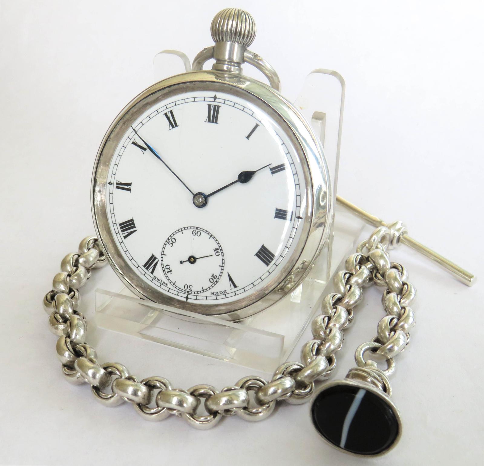Antique silver Dimier Freres pocket watch and chain