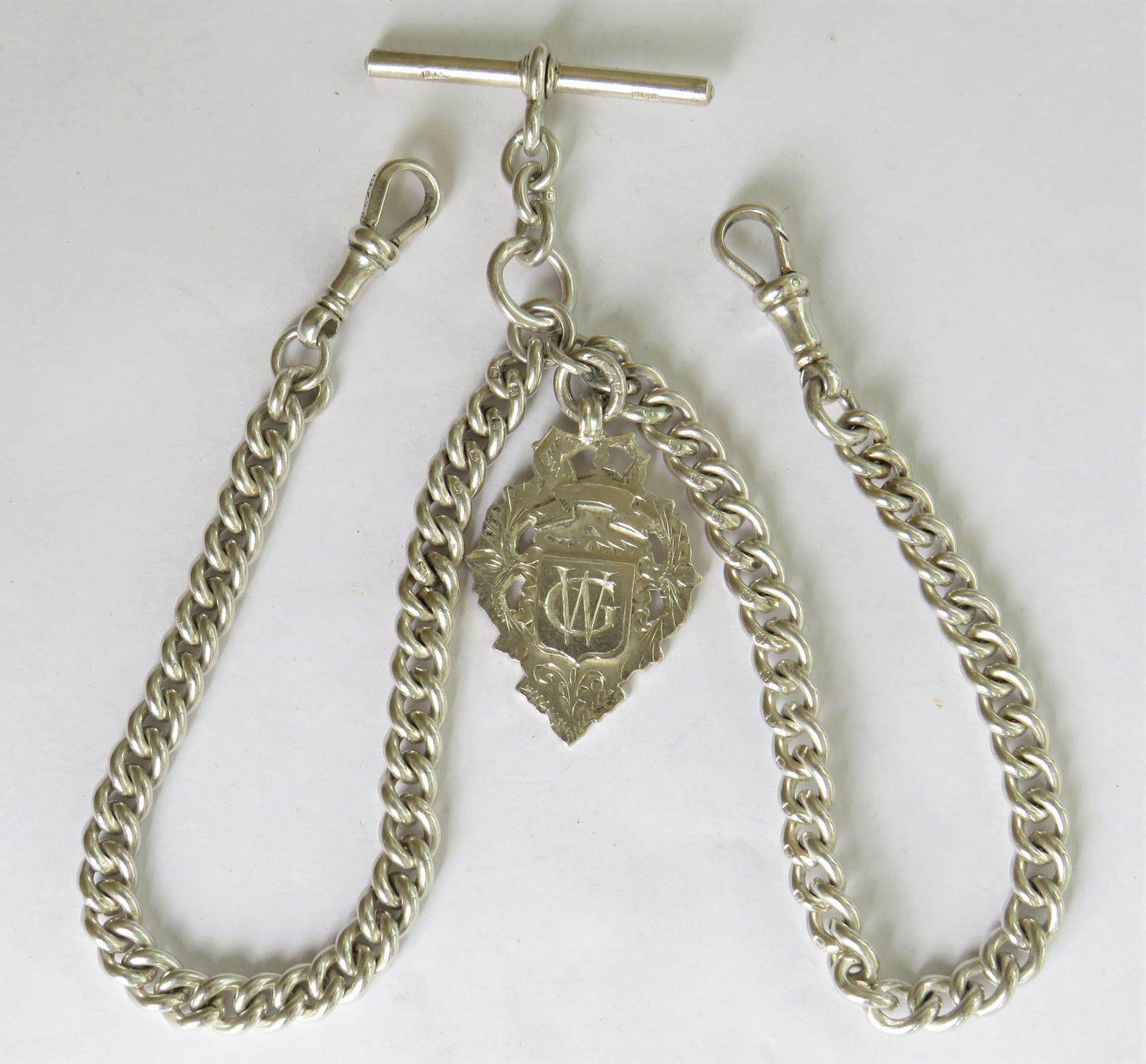 Antique Silver Double Pocket Watch Chain