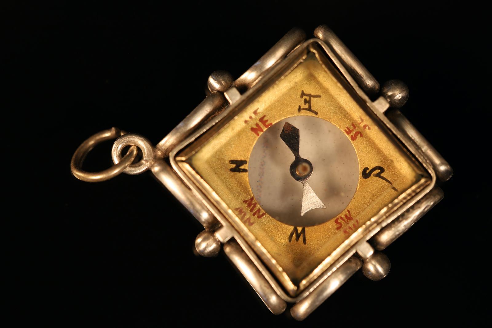 Antique Silver Double-Sided Transparent Compass Fob or Pendant c.1900
