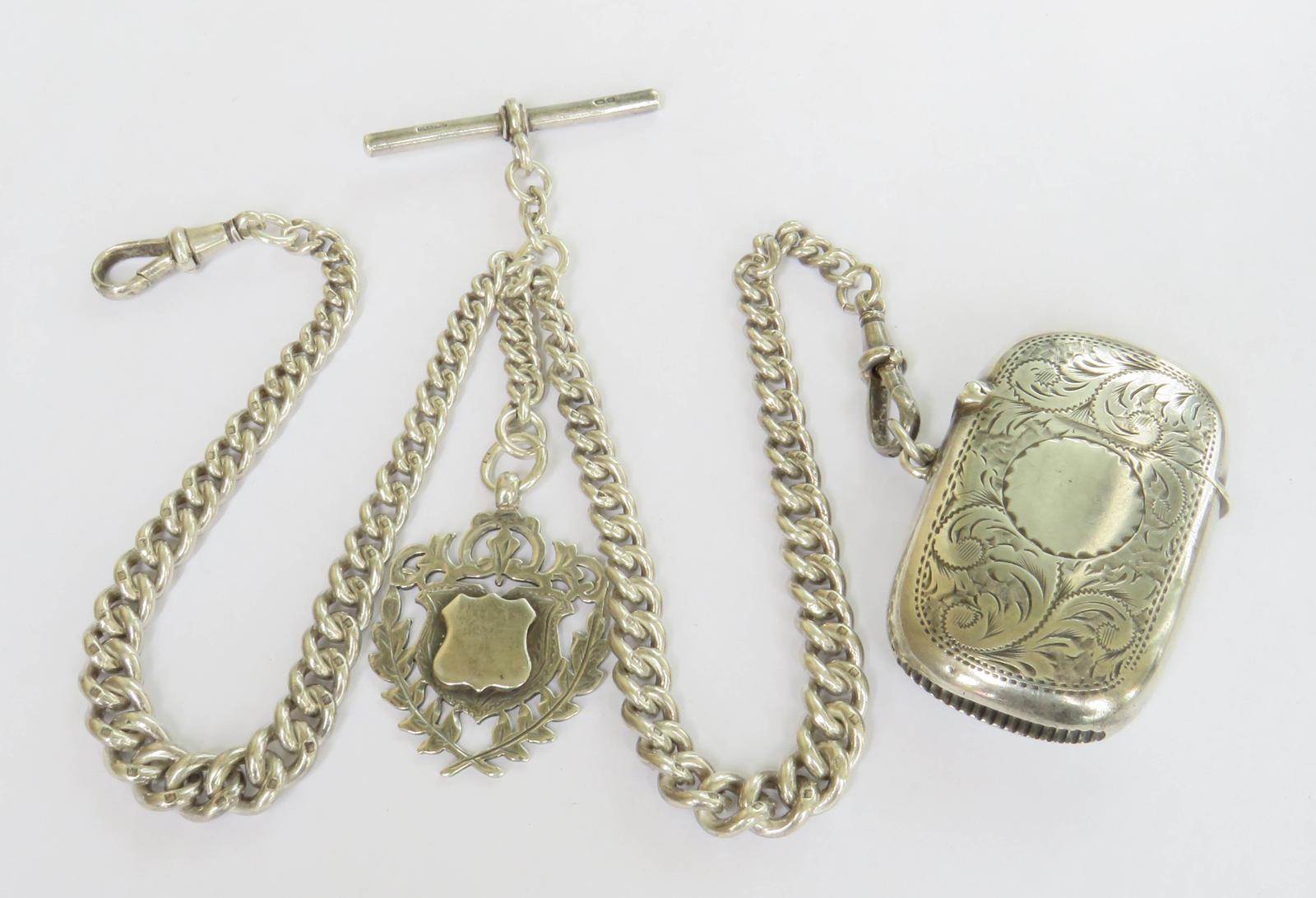 Antique Silver Double Watch Chain & Vesta