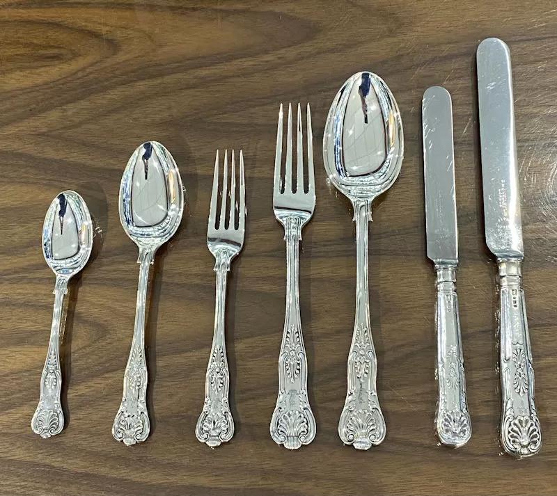 Antique Silver Edwardian Kings Pattern Cutlery / Flatware Service For 18 People Made in 1908