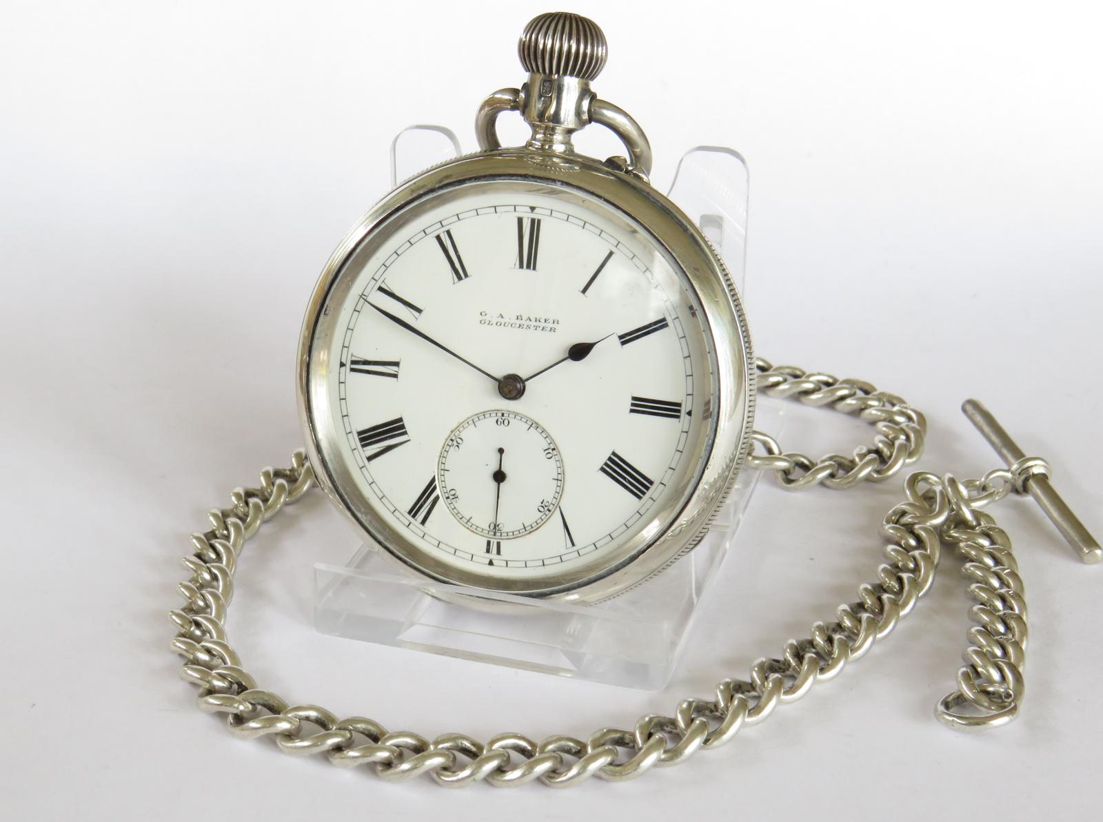 Antique Silver Ehrhardt Pocket Watch & Chain