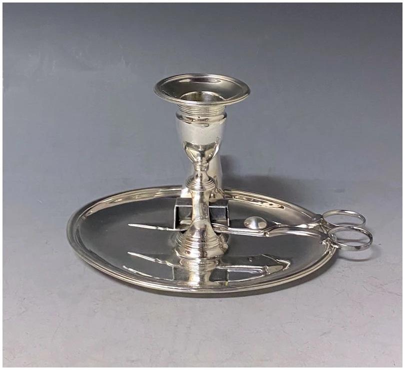 Antique Silver George III Oval Chamberstick Made in 1792 with Original Wick Trimmers