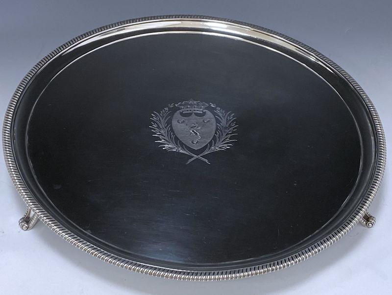 Antique Silver George III Salver Made in 1808 with the (coat of Arms of Earl of Darnley, Baron Clifton)