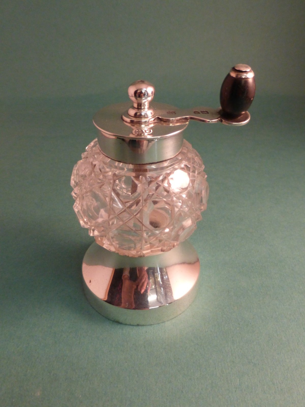Antique Silver & Glass Pepper Grinder, London 1896 Hukin & Heath
