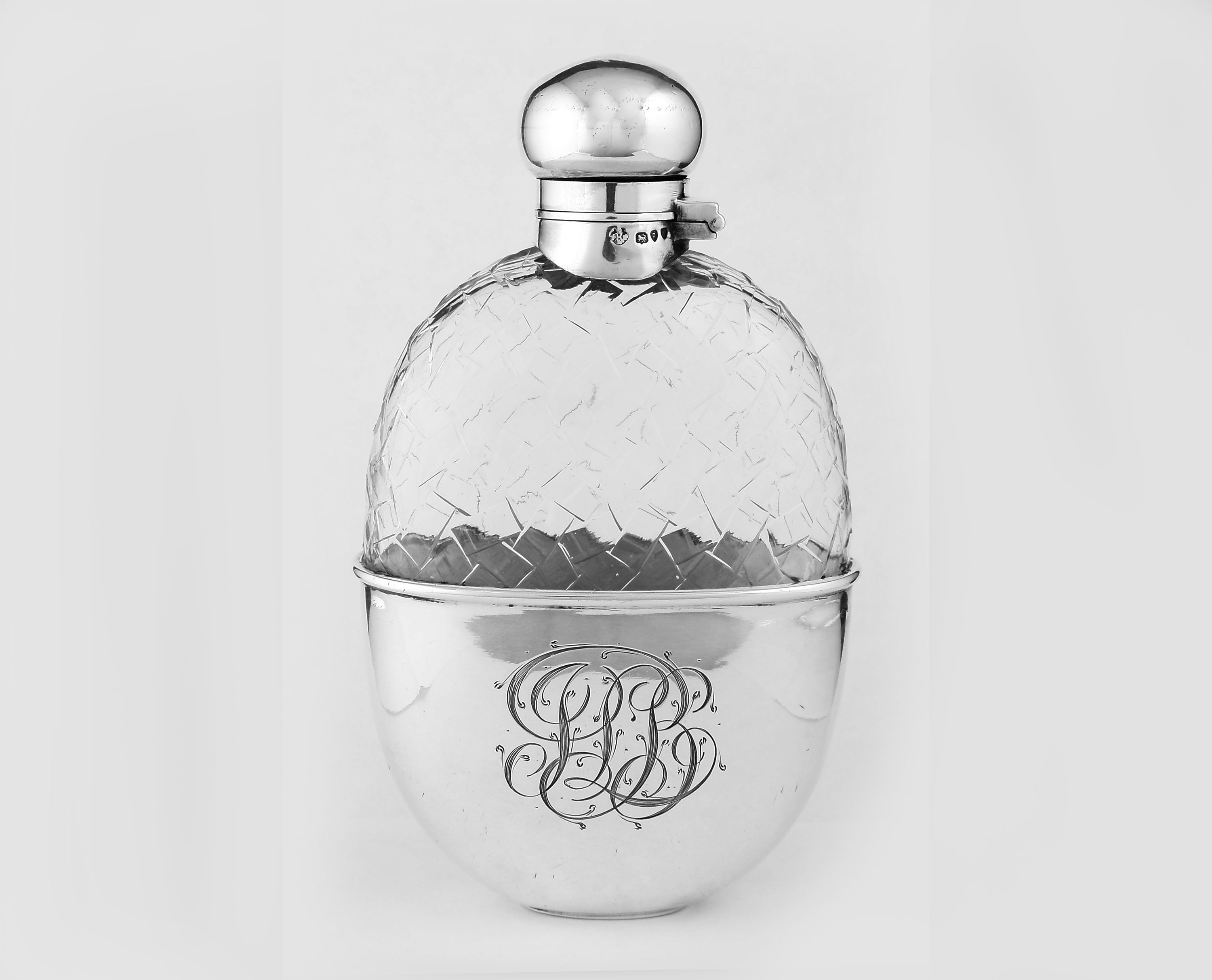 Antique Silver Hip Flask William Hutton London 1895 Victorian Glass Bottle JLS