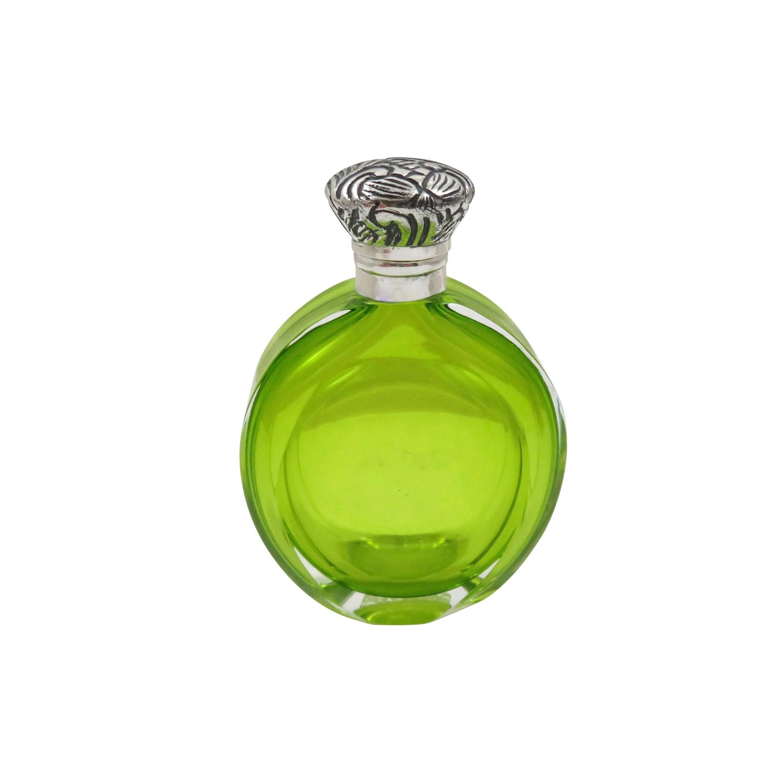 Antique Silver & Lime Green Glass Scent / Perfume Bottle c.1890