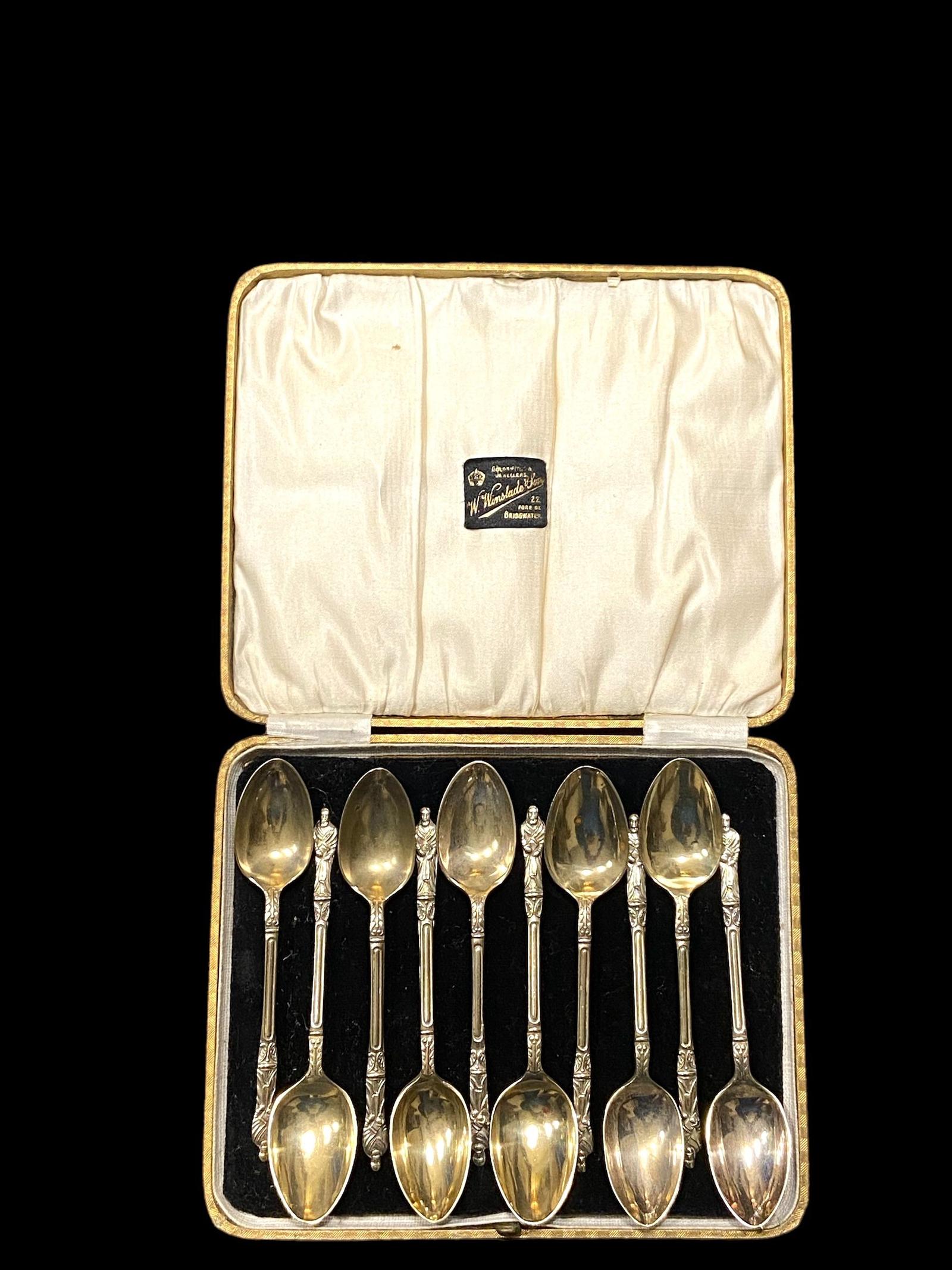 Antique Silver Monk Tea Spoons / E.P.N.S. A1 / Set of 10 / Made in England c.1920