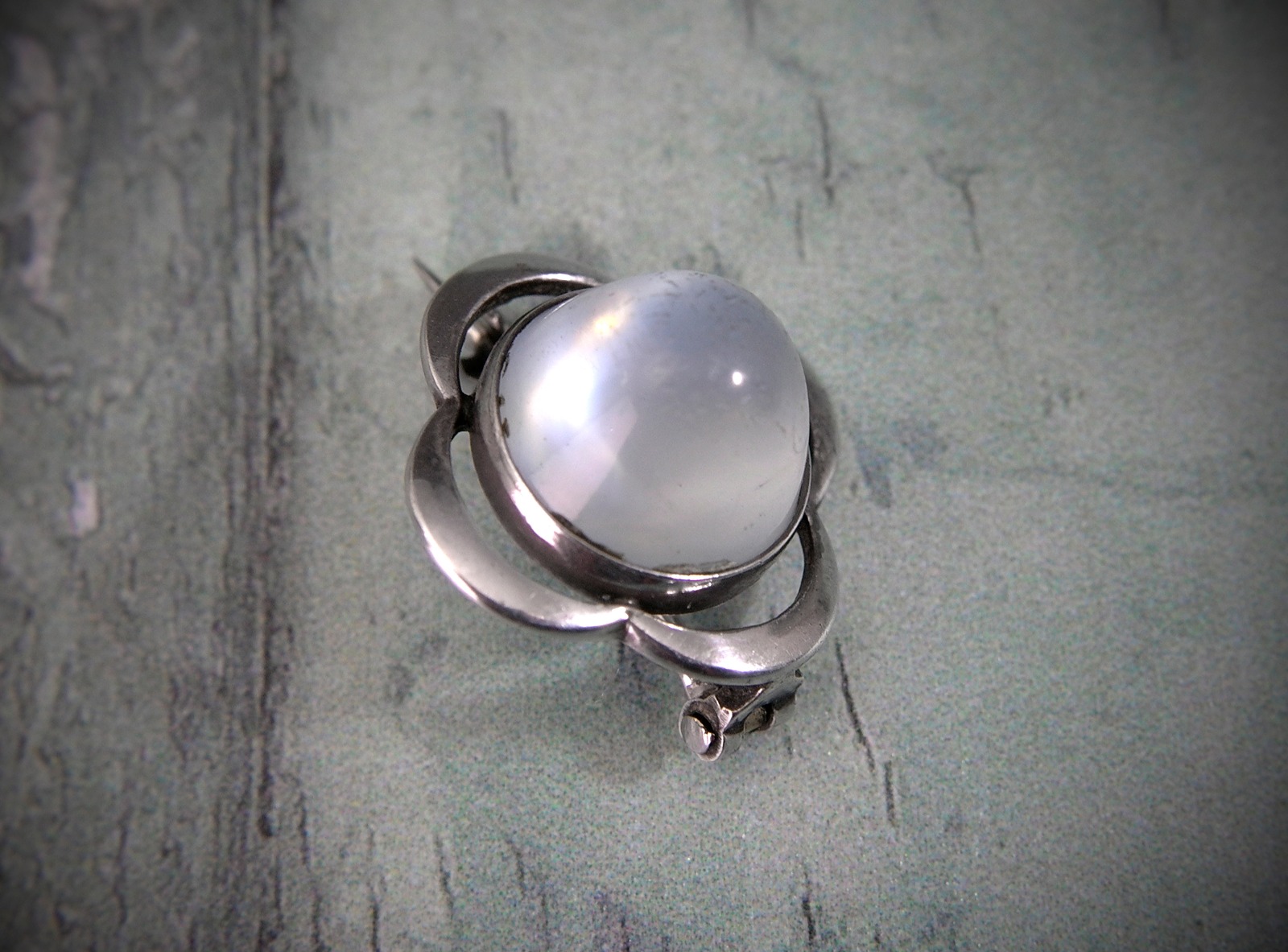 Antique Silver & Moonstone Brooch, Sugarloaf Cabochon c.1910 / 1920