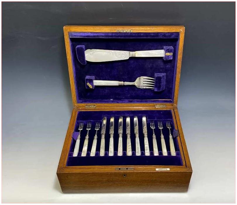 Antique Silver & Mother of Pearl Edwardian Fish & Fruit Dessert Service Made in 1906