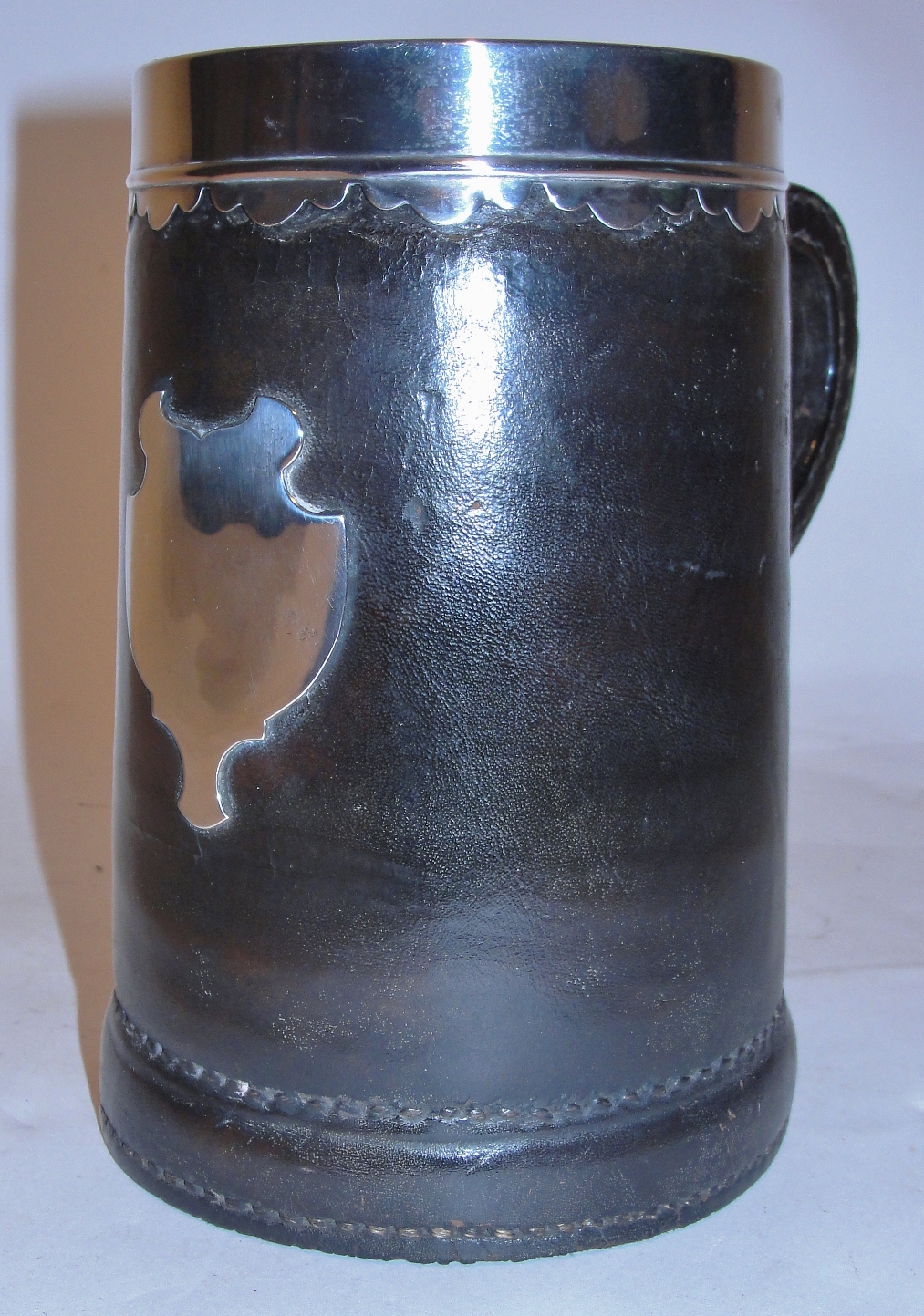 Antique Silver Mounted Leather Treen Tankard 1875
