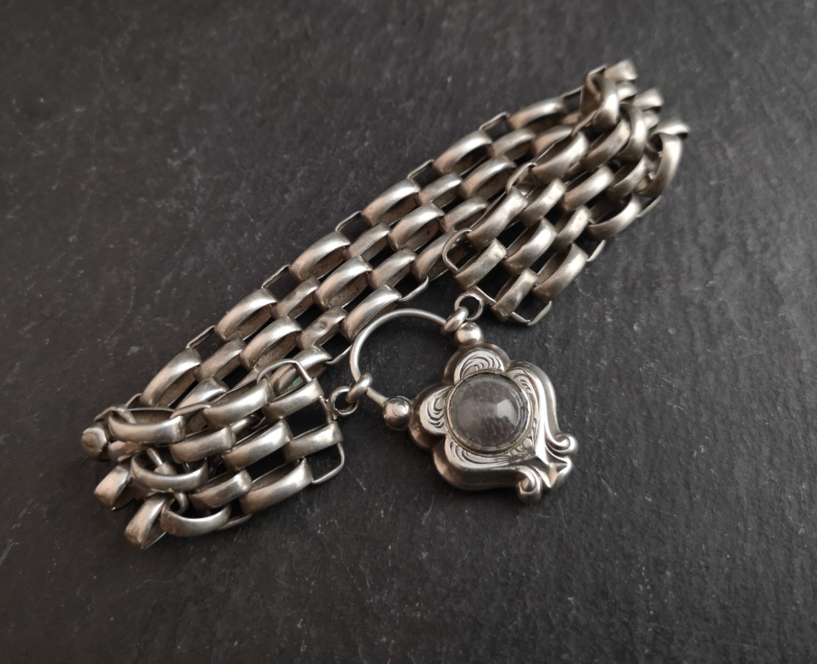 Antique Silver Mourning Bracelet, Padlock Clasp