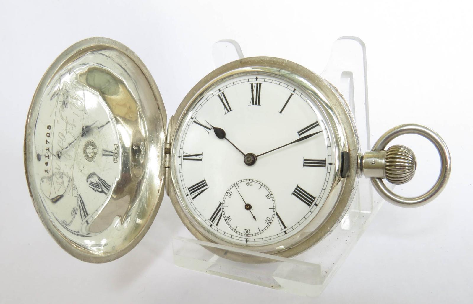 Antique Silver Omega Full Hunter Pocket Watch, Ornate Case