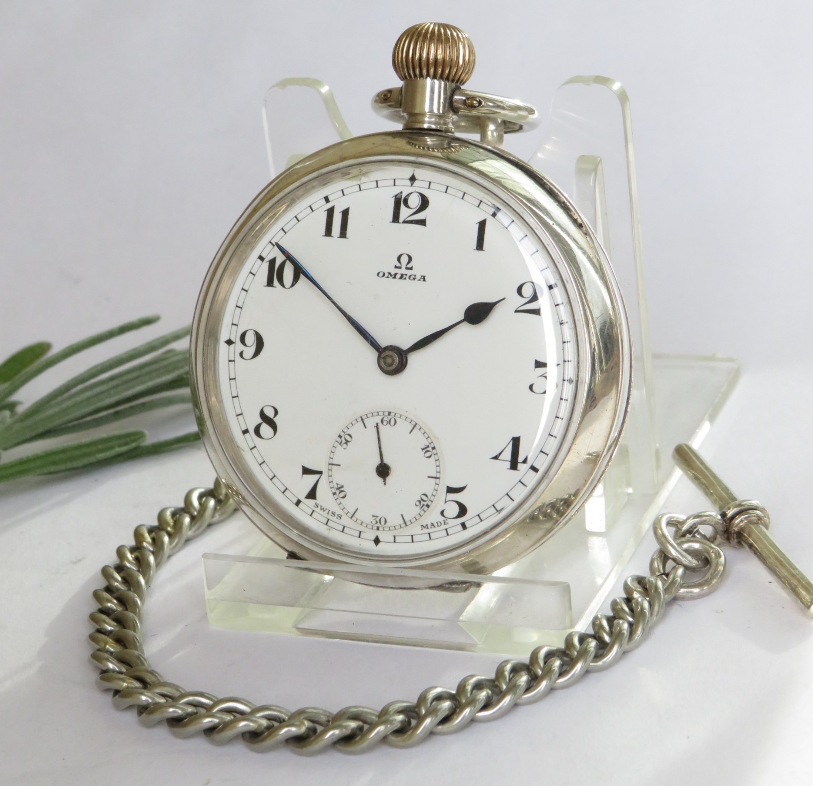 Antique Silver Omega Pocket Watch & Chain