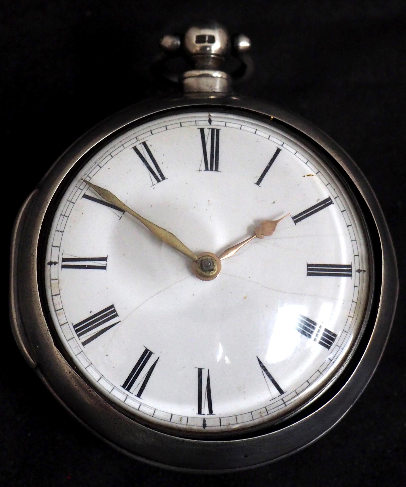 Antique Silver Pair Case Pocket Watch Fusee Verge Escapement Key Wind Enamel Dial