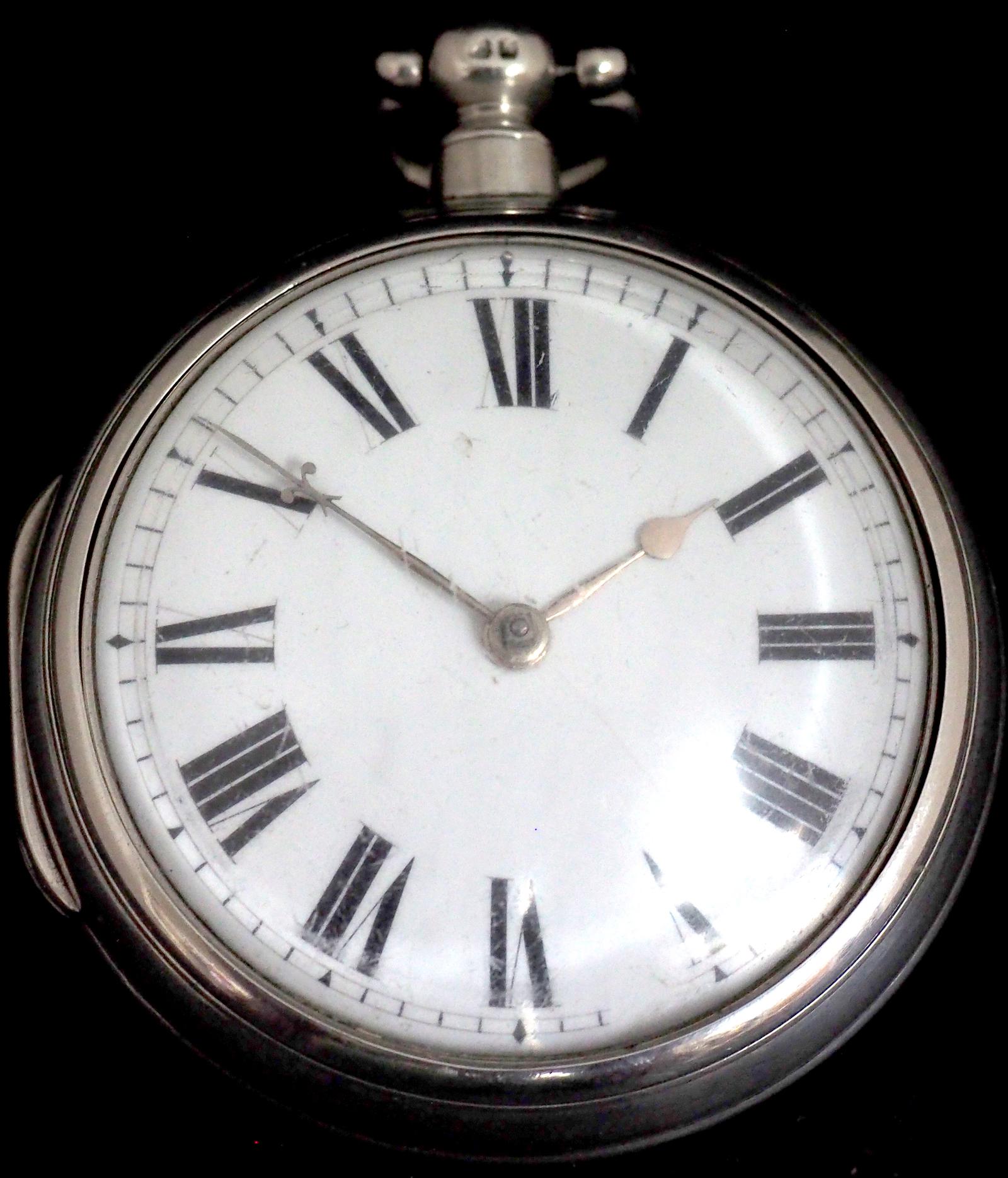 Antique Silver Pair Case Pocket Watch Fusee Verge Escapement Key Wind Enamel Dial M Moore Hillsborough