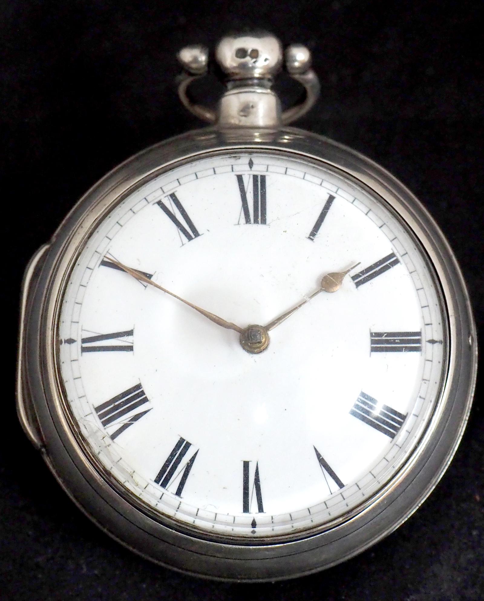 Antique Silver Pair Case Pocket Watch Fusee Verge Escapement Key Wind Enamel Dial Richardson London