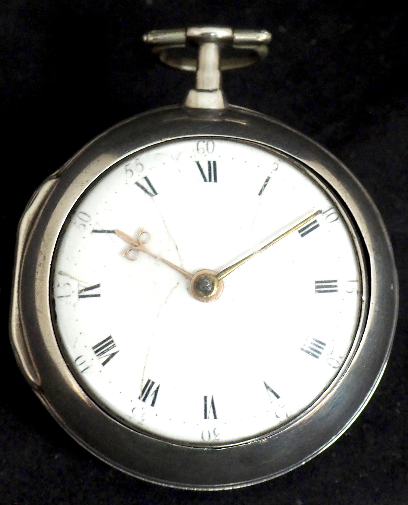 Antique Silver Pair Case Pocket Watch Fusee Verge Escapement Key Wind Enamel Dial W J Wolverhampton