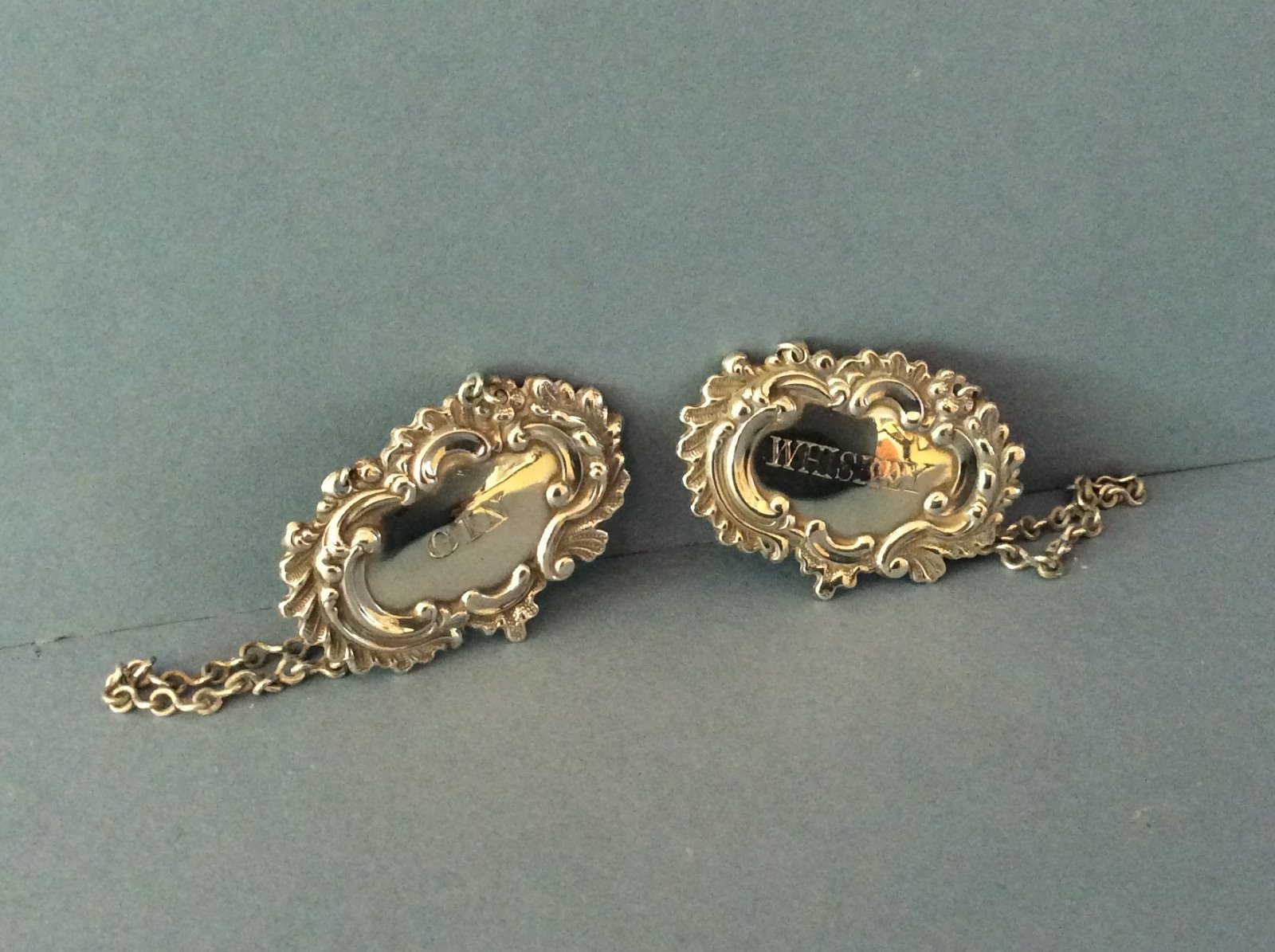 Antique Silver Pair of Decanter Labels - Gin & Whiskey