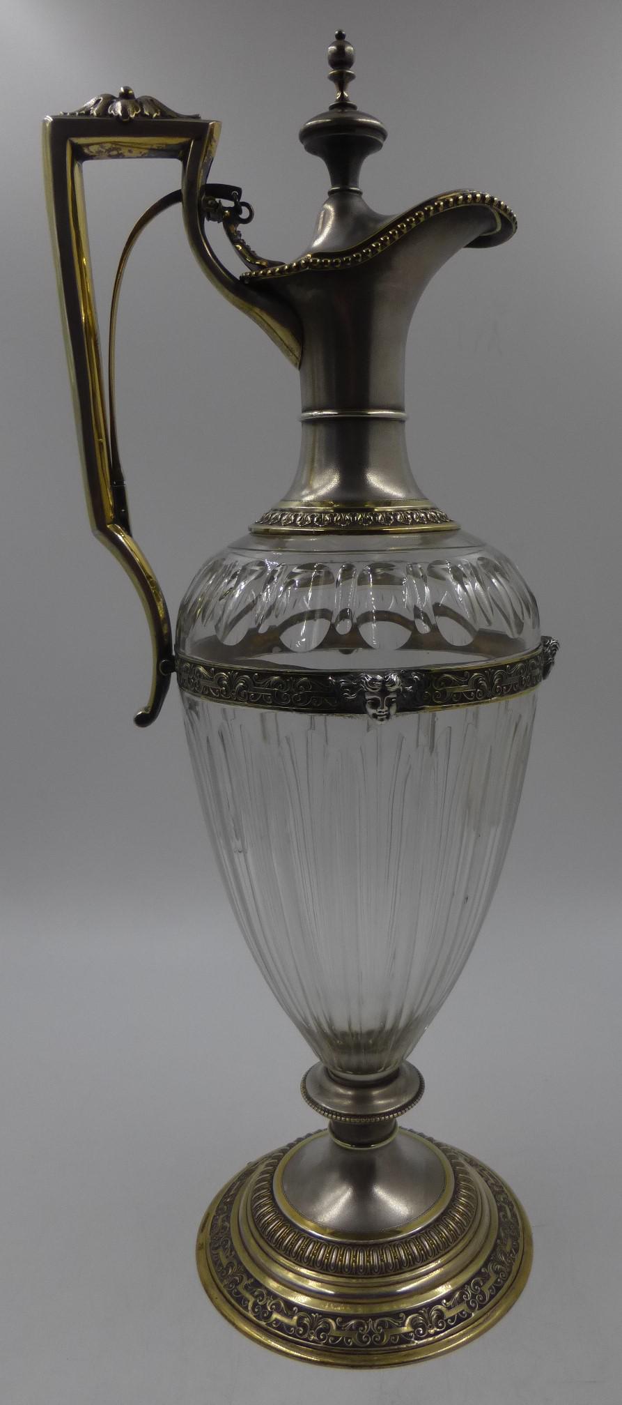 Antique Silver Parcel Gilt Claret Jug. 800 Standard c.1880
