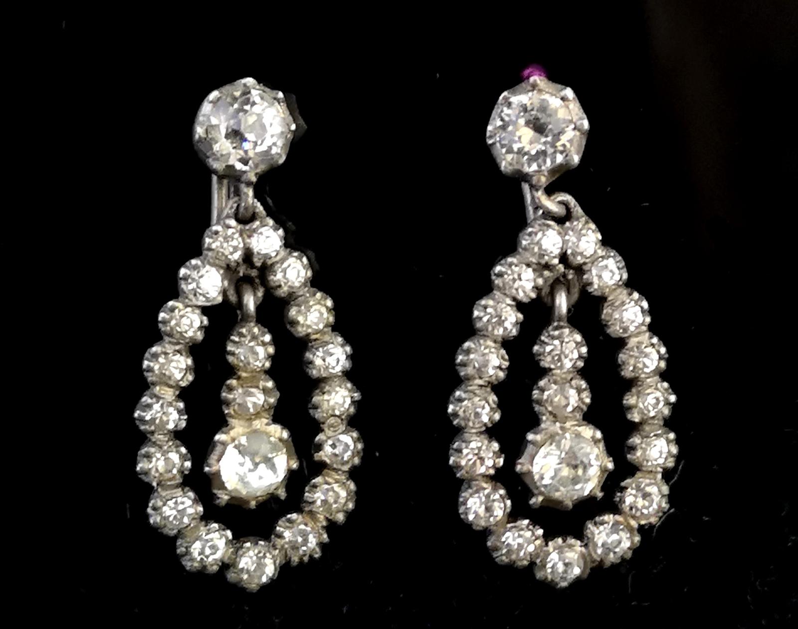 Antique Silver Paste Drop Earrings, Art Nouveau