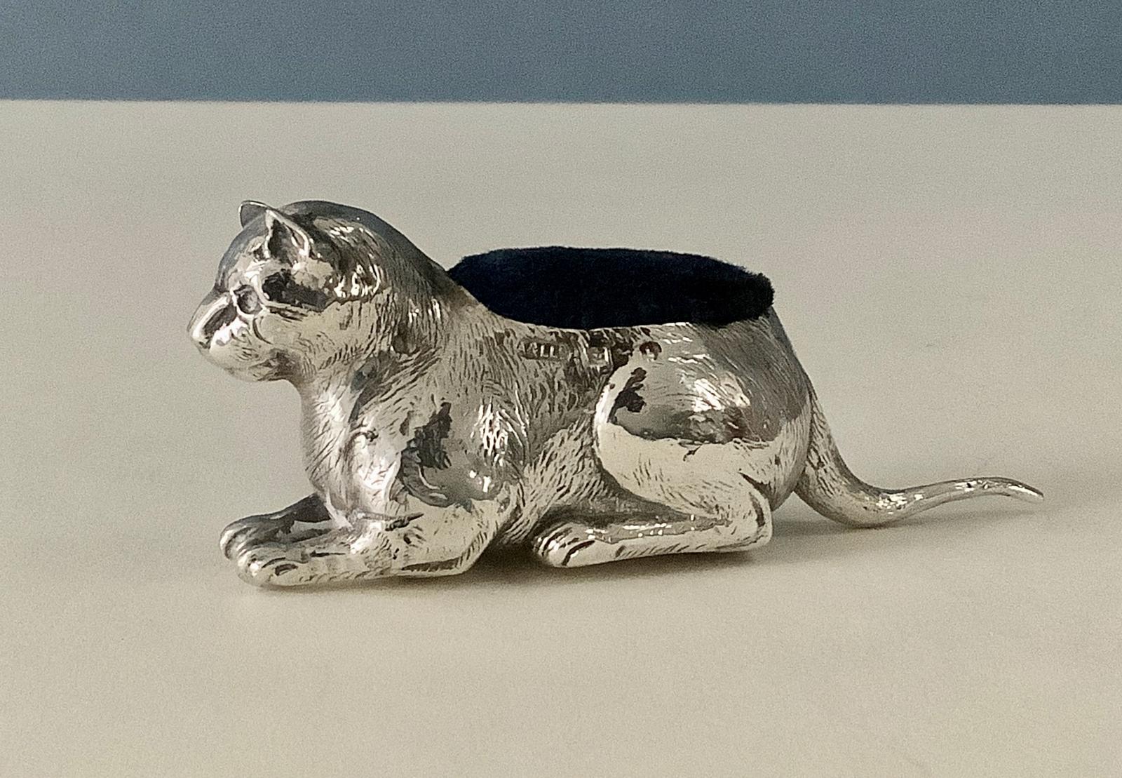 Antique Silver Pin Cushion - Cat