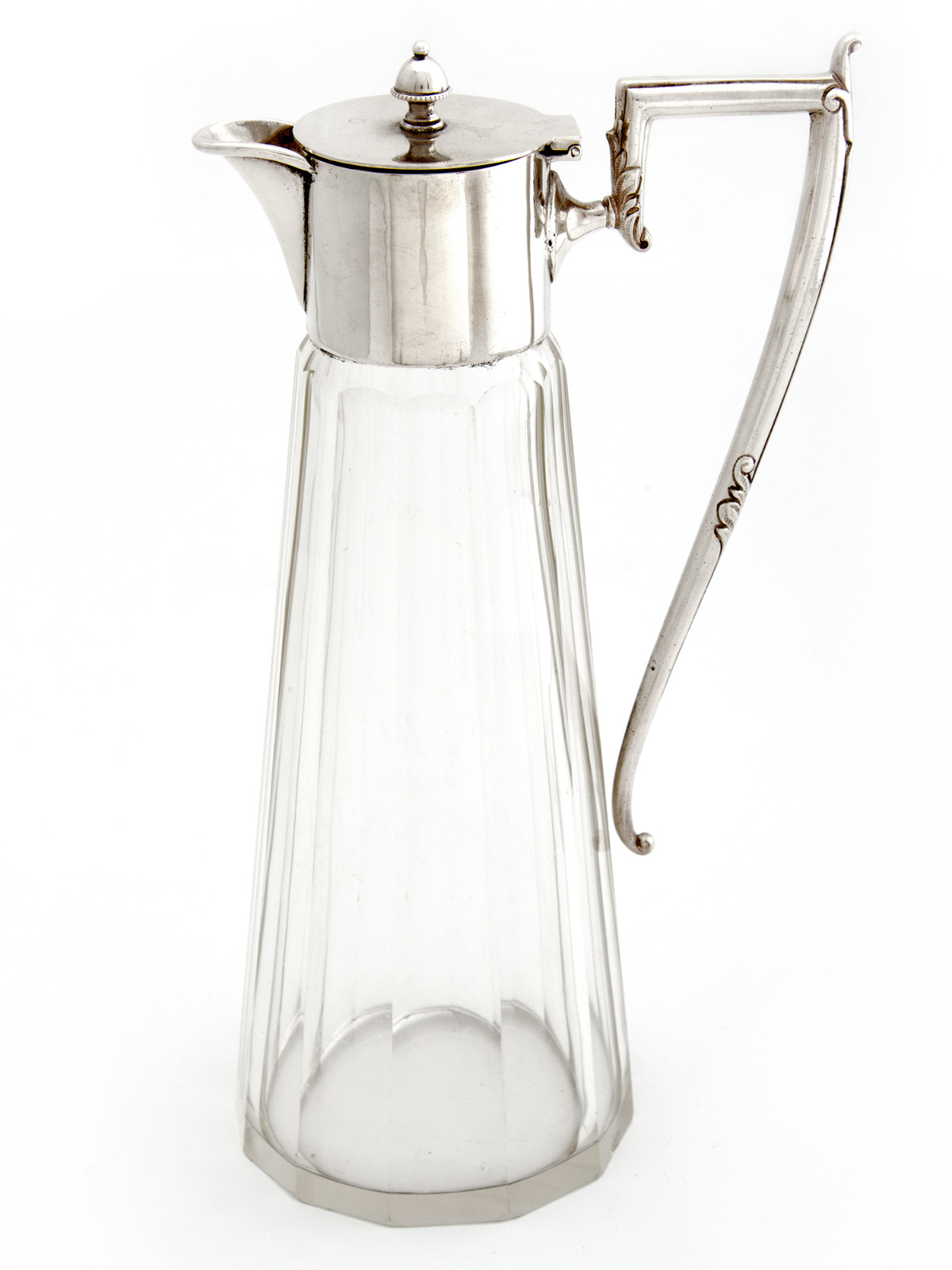 Antique Silver Plate & Clear Facet Cut Glass Circular Claret Jug